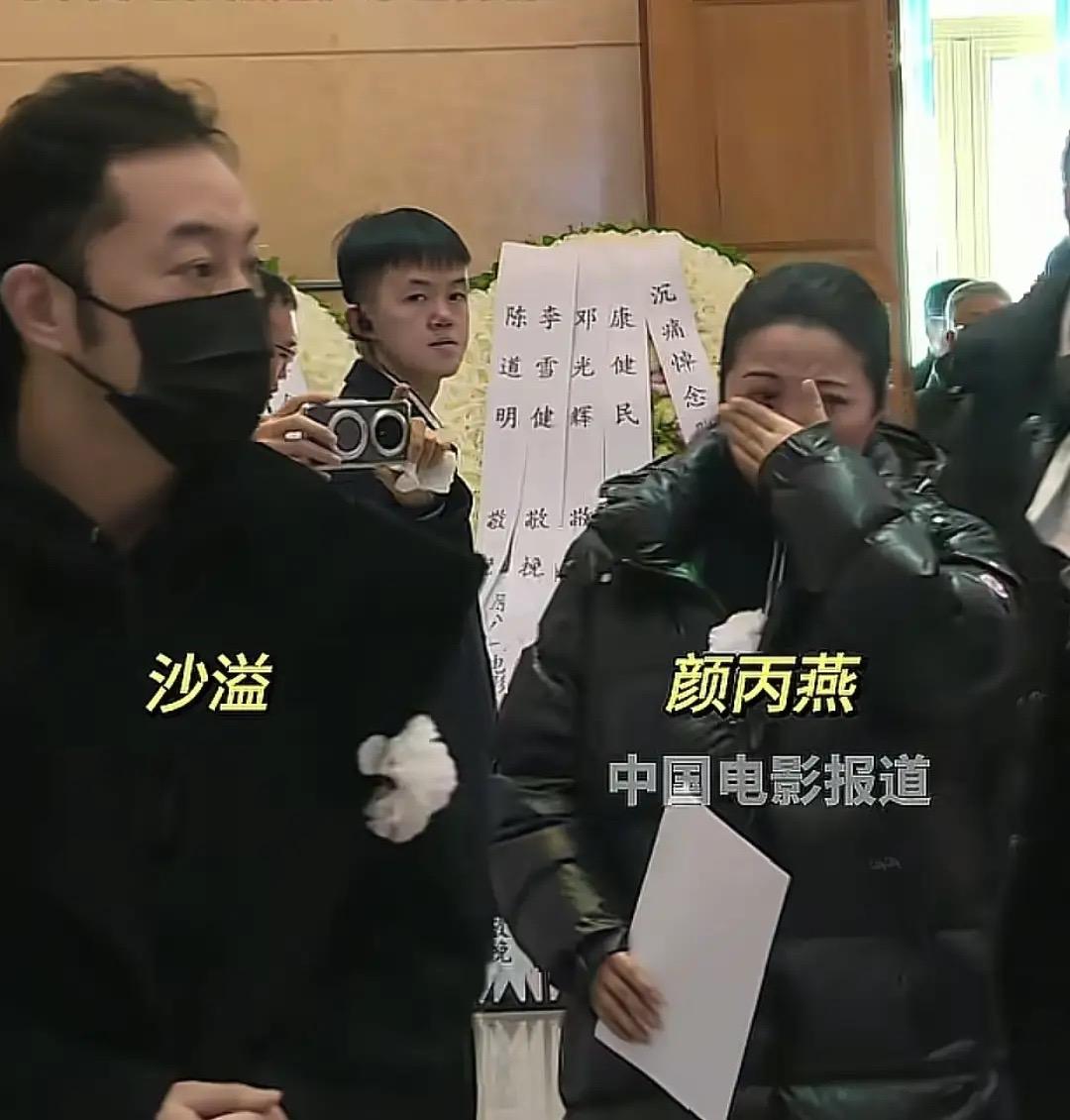 在告別儀式的現場還看到了顏丙燕,她穿着黑色羽絨服,有好幾次都控制不住自己的情緒,當場痛哭流涕。