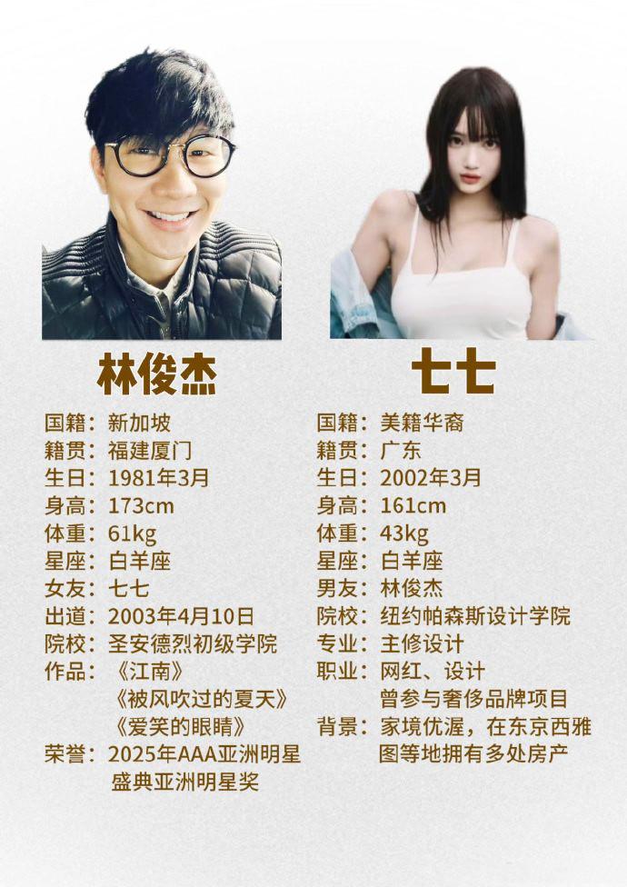 作爲林俊杰的女友,七七並非只有 “網紅” 這一個標籤。這位出生於 2001 年的美籍華裔女孩,不僅擁有令人驚豔的顏值,更有着出衆的才華與優渥的家境。她畢業於紐約帕森斯設計學院 —— 這所被譽爲 “設計界哈佛” 的頂尖院校,主修設計專業的她,憑藉獨特的審美與專業能力,不僅曾參與奢侈品牌項目,更在 2025 年斬獲 AAA 亞洲明星盛典亞洲明星獎,成爲設計與時尚領域的新銳力量。