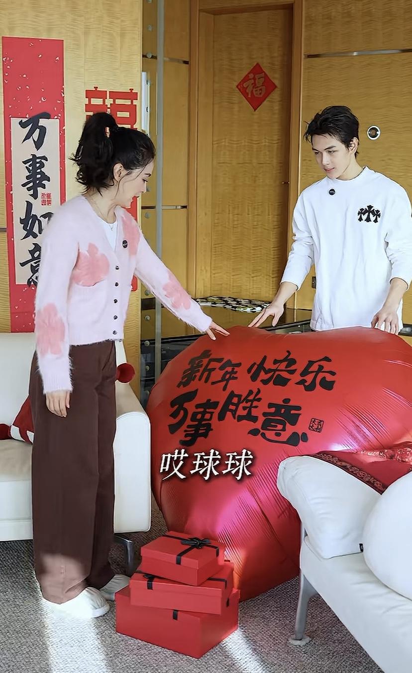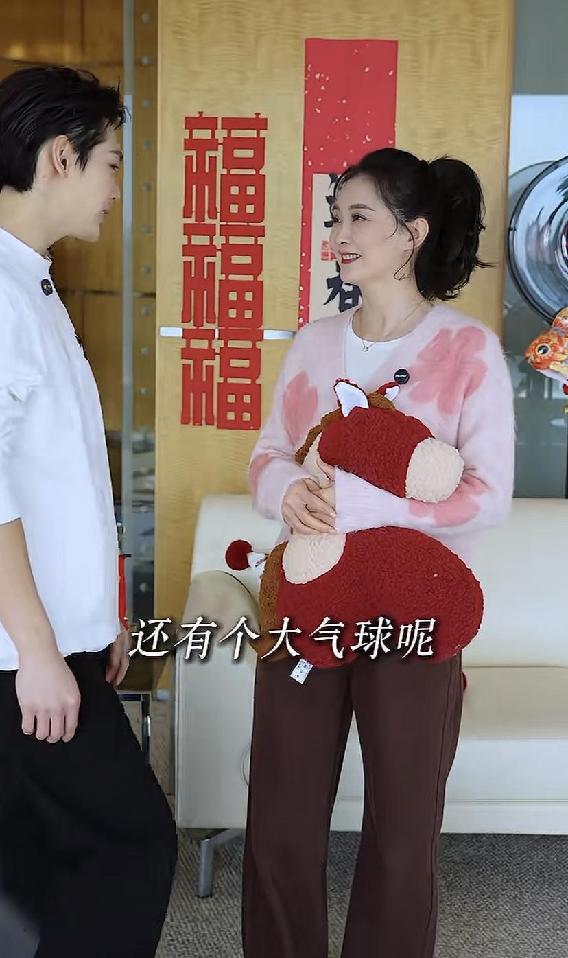 王豔家裏的別墅也很氣派,裝修一看就是高級大氣上檔次。她和兒子一起佈置別墅,貼了紅色的福字、還打起了紅色氣球。