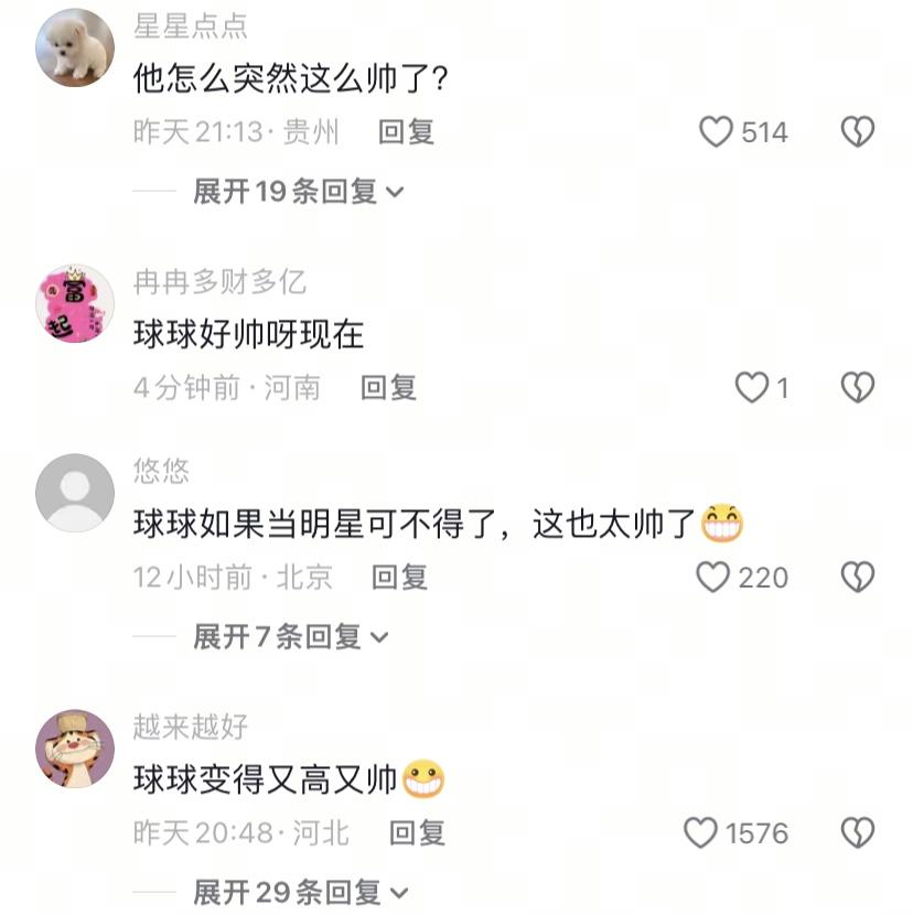不少網友都在誇球球變帥了,這顏值如果不當明星的話真是太可惜了。