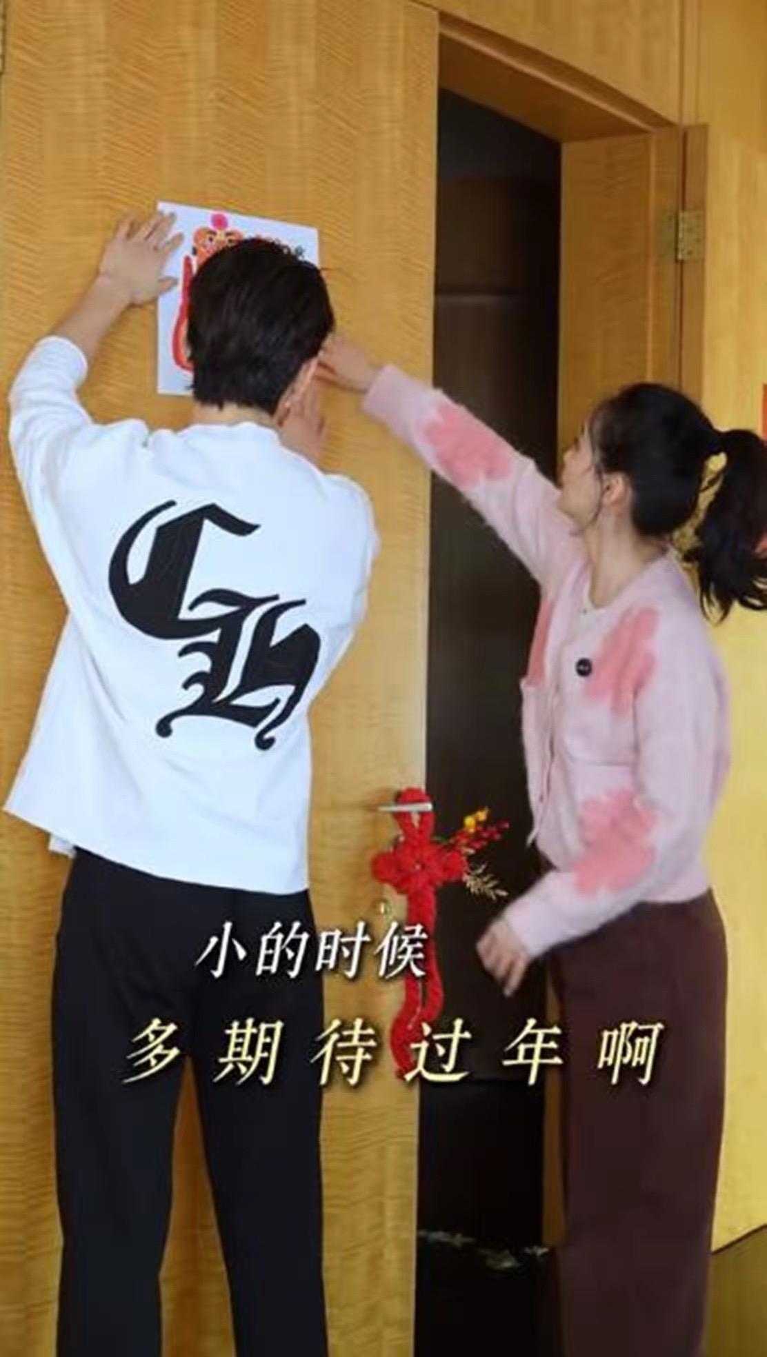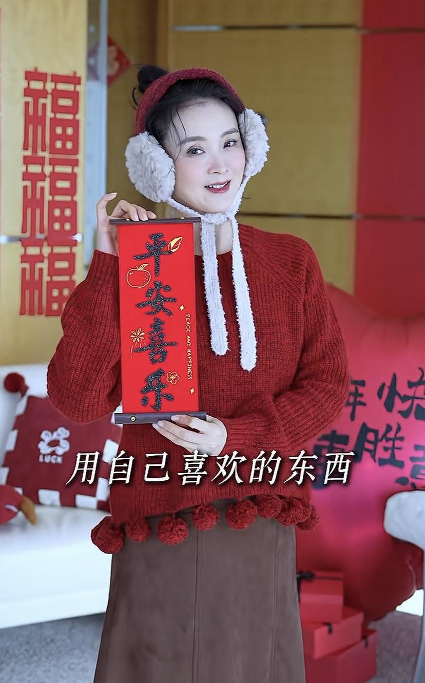王豔和兒子一起佈置別墅,看着大紅色喜慶的裝飾,突然就覺得有了年味。
