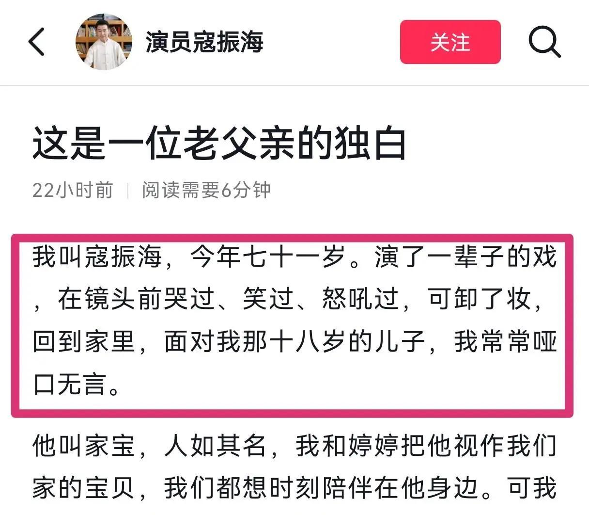 71歲的寇振海在社交賬號髮長文,首談親子關係。