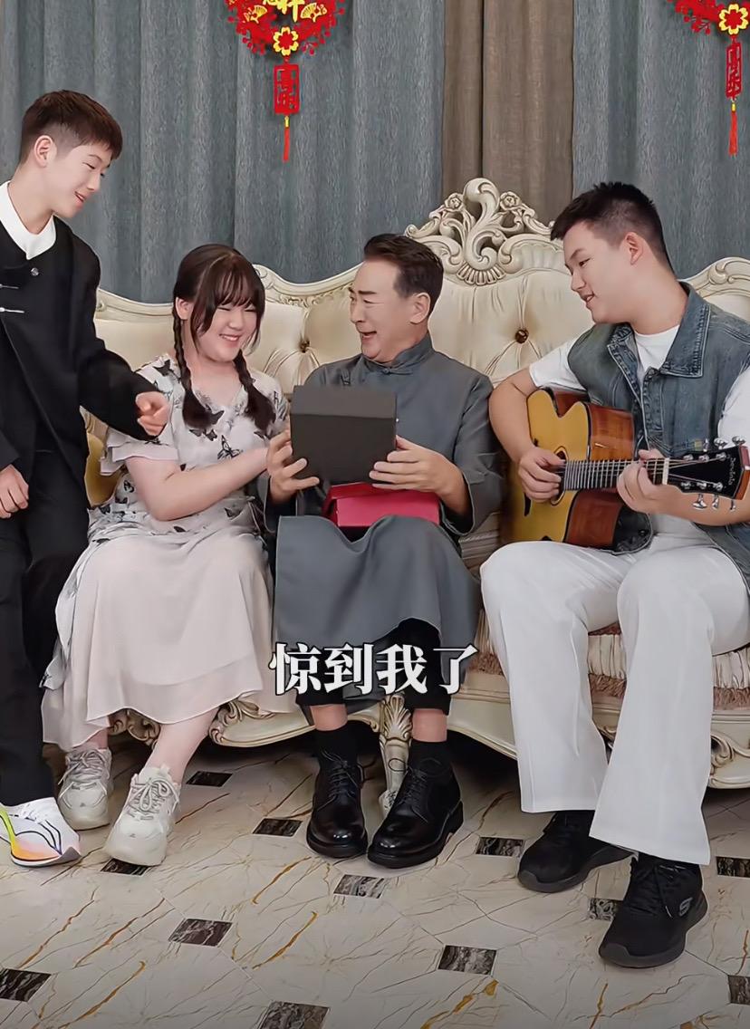 寇振海一家人站在一起,畫面也是非常的養眼。大兒子比寇振海還高,看着個頭都超過180cm了。