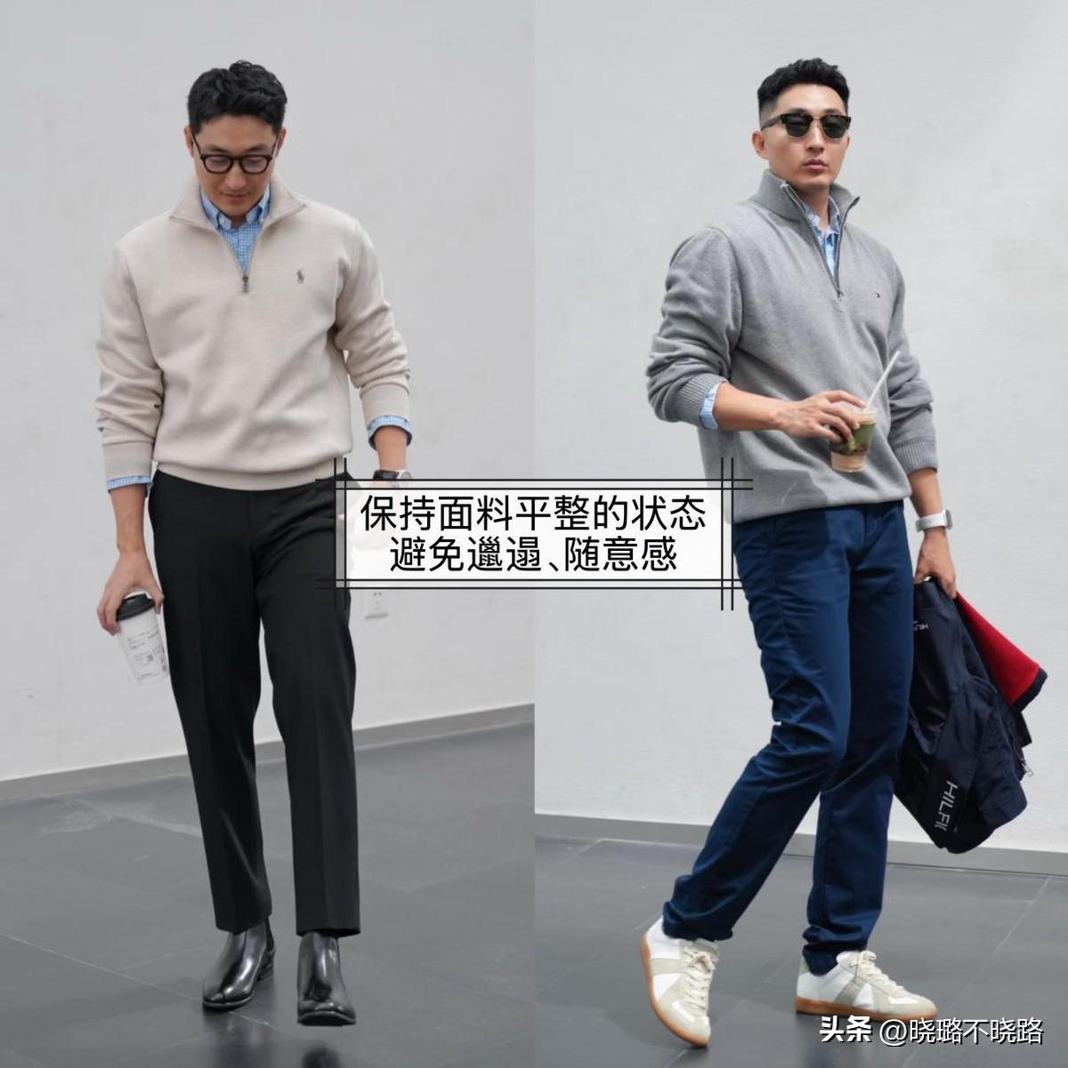 褲子要以西裝褲、直筒褲爲主,別穿太過休閒化的運動褲、破洞褲,長度及鞋面位置,避開拖沓感,最關鍵的外套,裁剪上利落有型,規避oversize或者緊身款。