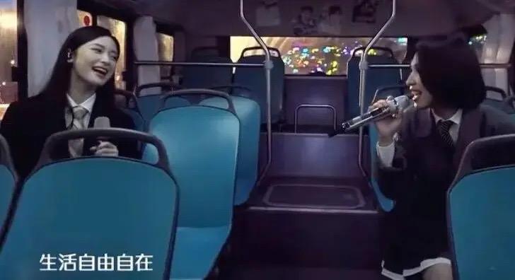 再就是沈月和戴佩妮了,兩人坐在車中演唱倒是挺有創意的。