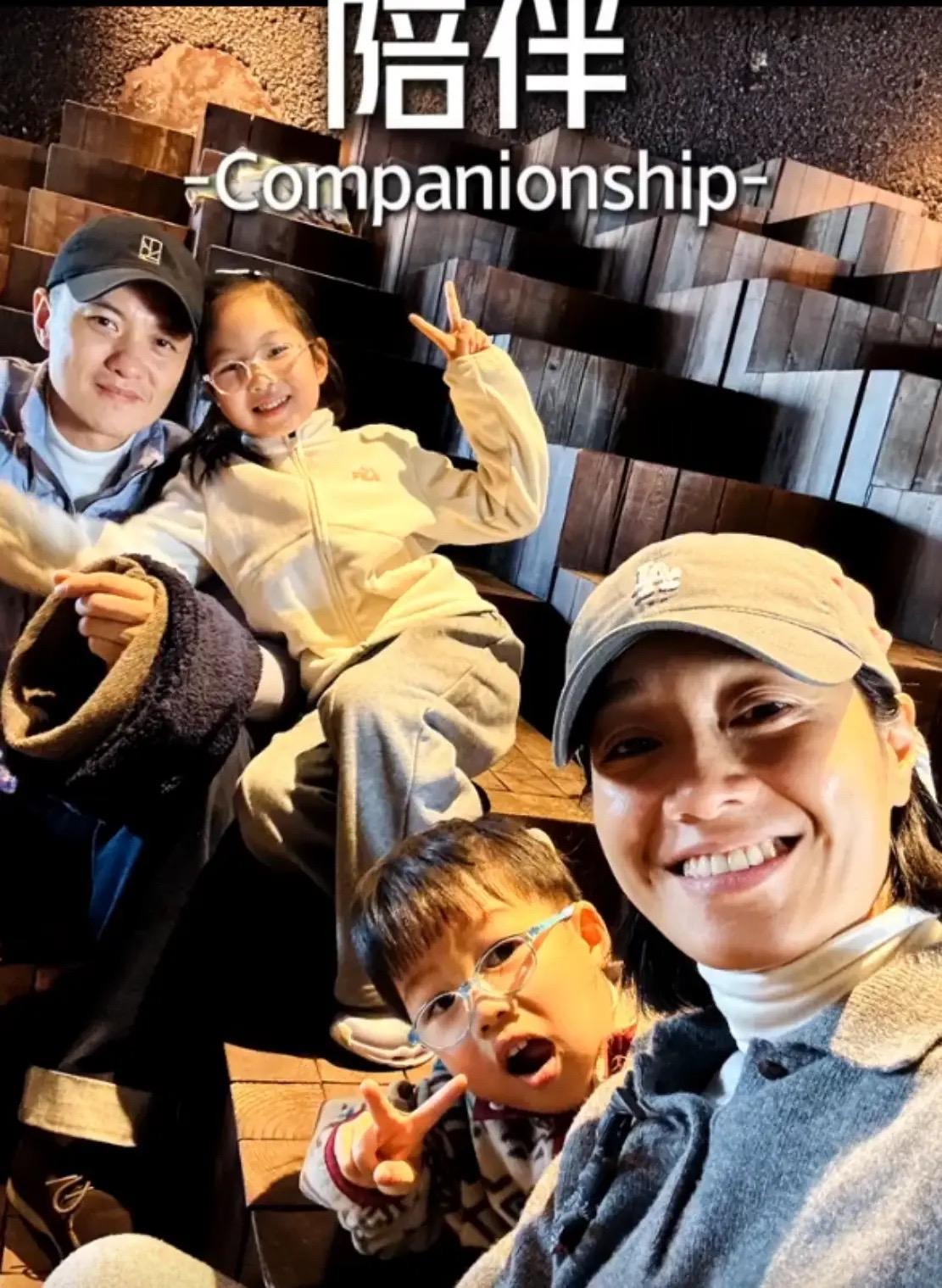 朱丹新年曬全家福,兒女戴眼鏡長相很一般,夫妻倆素顏蒼老皺紋深