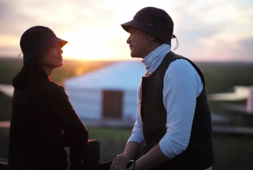 還曬出來自己和老公的素顏照,他們穿着厚厚的羽絨服、戴着帽子、圍巾,在大學裏拍了合影。