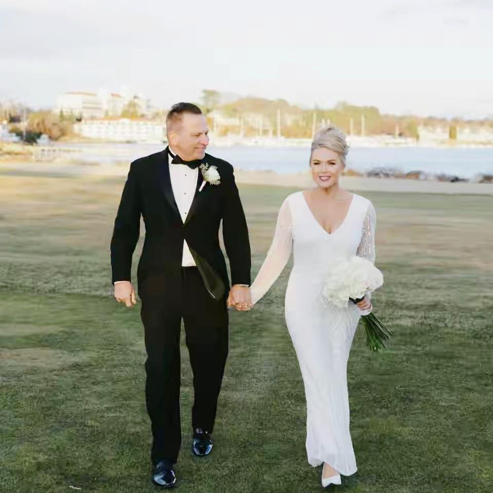 彼時的她,穿搭還帶着校園的青澀,簡單的白襯衫搭配牛仔褲,清爽利落的造型裏,藏着對未來的憧憬與嚮往。畢業後,萊維特從電視媒體轉戰職場,一步步憑藉自身實力站穩腳跟。她的職業進階之路,沒有背景的加持,全靠日復一日的努力與堅守。而她的愛情也在時光裏悄然沉澱,與丈夫裏西奧的相知相守,成爲她最堅實的後盾。