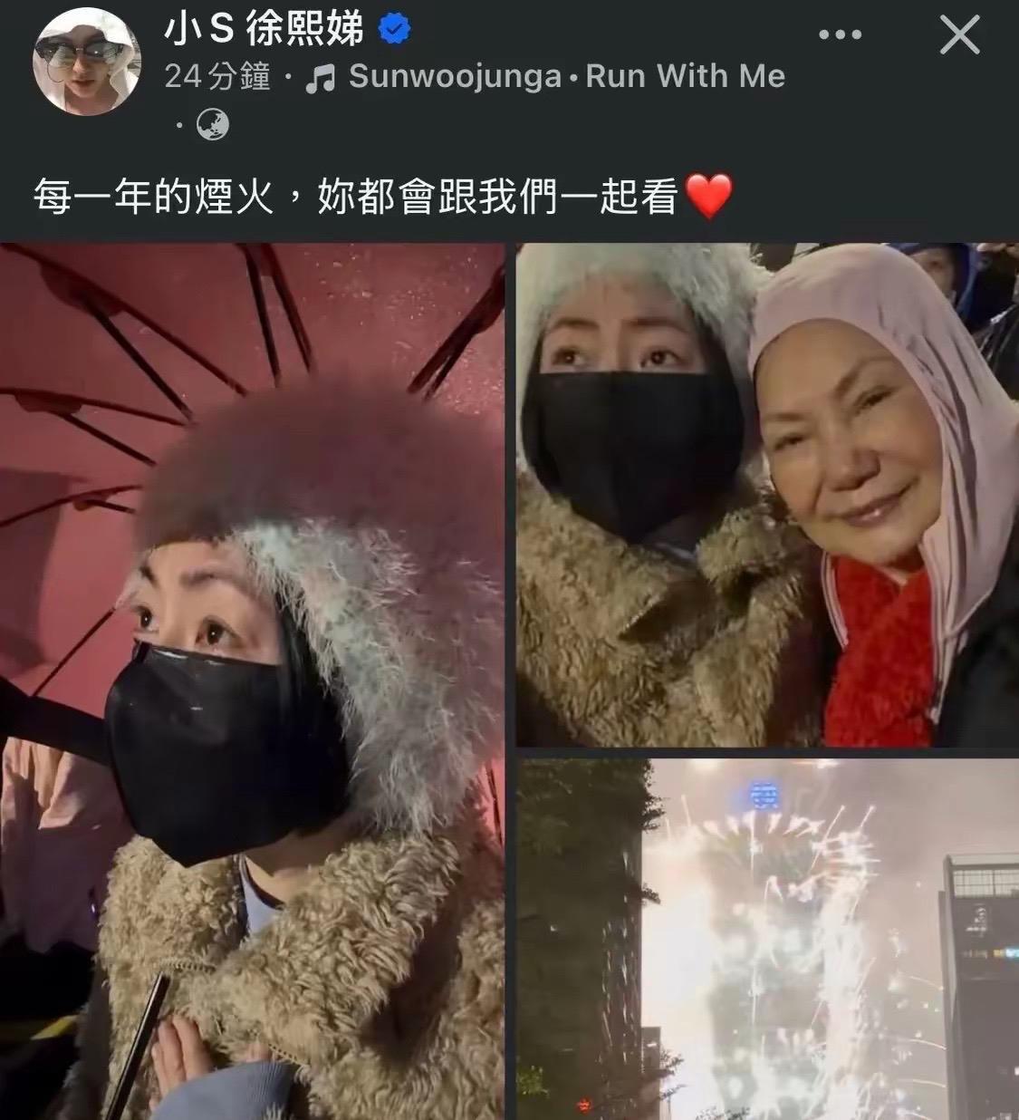 小S這邊也沒閒着,跨年夜的時候她和媽媽一起看煙火。並且更新了自己的社媒動態,配文:每一年的煙火,你都會跟我們一起看。