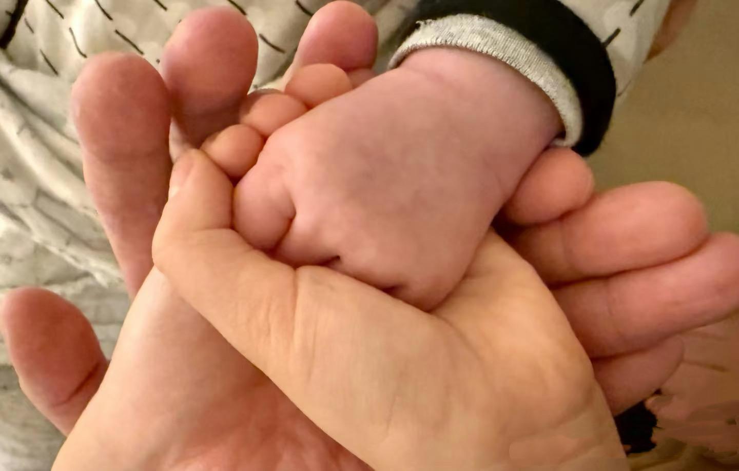 古巨基還曬出一家四口手疊手的合影,爸爸媽媽的大手、哥哥的小手、還有弟弟攥着的手掌。溫暖的畫面,只讓人覺得偉大。