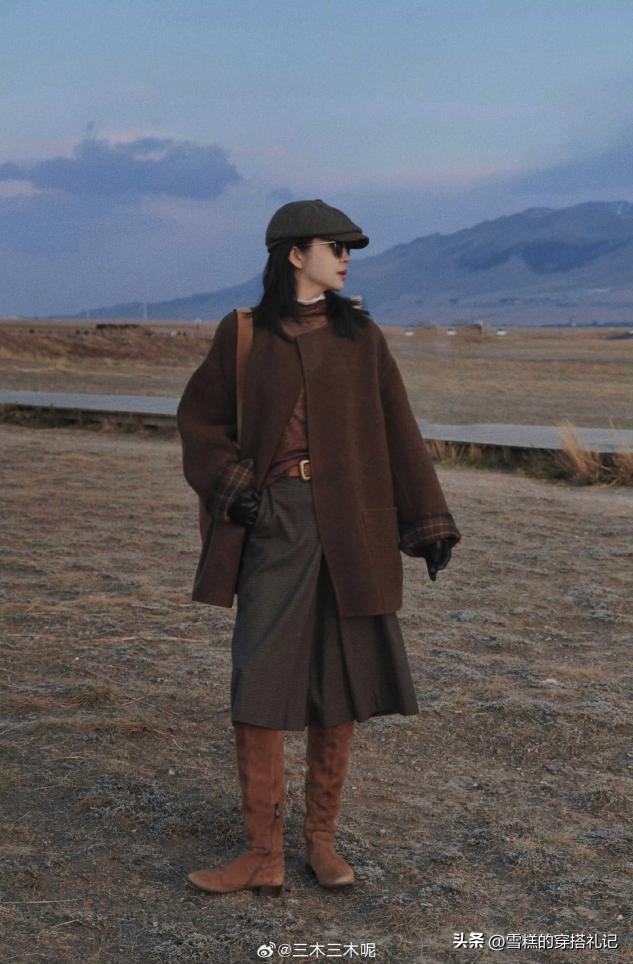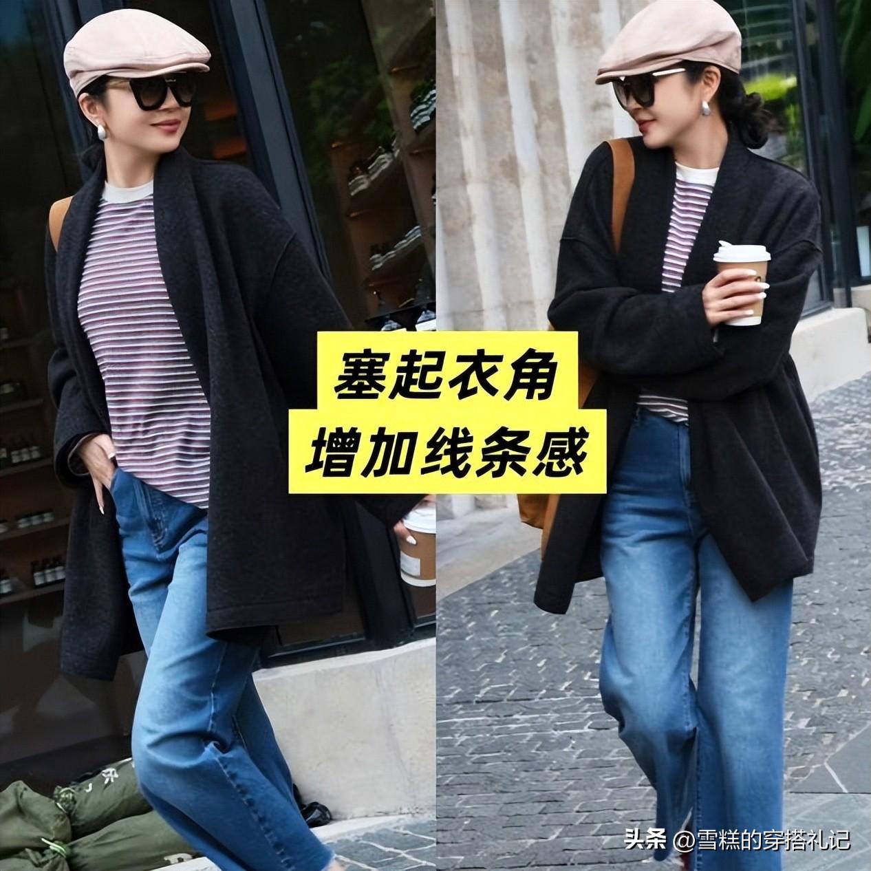 秋冬不想穿得臃腫顯胖,一定要學會鬆緊結合的搭配方式,大家可以學習下三木博士的選款方式,選擇一件中長款的寬鬆版型的大衣,從肩膀到衣襬的位置都比較寬鬆,有一定的鬆弛感,還可以利用寬鬆版型+黑色的組合達到加倍顯瘦的效果。當上半身的穿搭比較寬鬆的時候,下身就要修身一些纔好看,所以大家不要穿闊腿的褲子,換成這種線條流暢的直筒版型會更加出彩一些,穿起來格外的修身洋氣,顯得身材超級棒。