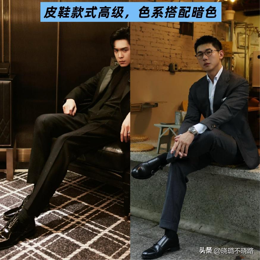 對於每一位男性而言,不管是在哪一個年齡階段的時候,只要是入手搭配皮鞋,大家的款式一定要優先於運用,整體走向比較高級而且能夠展現出來利落感的類型。像圖中這樣尖頭的設計以及一定要搭配黑色,還有就是深棕色深褐色這一類深色系展現出來的高級和沉穩的感覺是非常重要的。