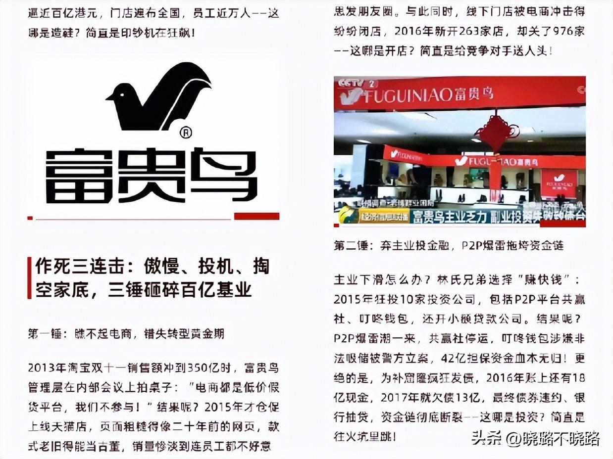 最主要的原因其實還是富貴鳥這個品牌的集團,在上市之後,沒有繼續去精進鞋子的質量研究,而是用一大筆錢都轉型到了房地產或者是其他的行業,導致轉型失敗,沒有任何的經驗就投入到自己不熟悉的行業領域,那麼失敗的風險是非常大的,以至於後來連他本身的男鞋單品也帶給不了人們任何的驚喜。