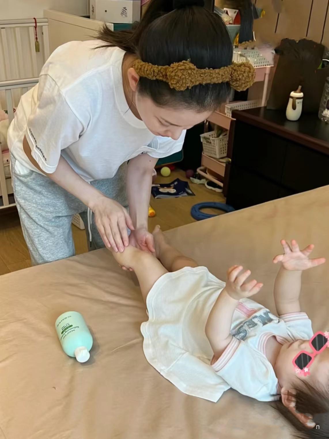王燦在2021年生下女兒小蛋餃,現在女兒已經4歲多了。夫妻倆就這麼一個孩子,自然是捧在手心裏像公主一樣。王燦會細心地給女兒抹身體乳,小蛋餃白白胖胖的很可愛。