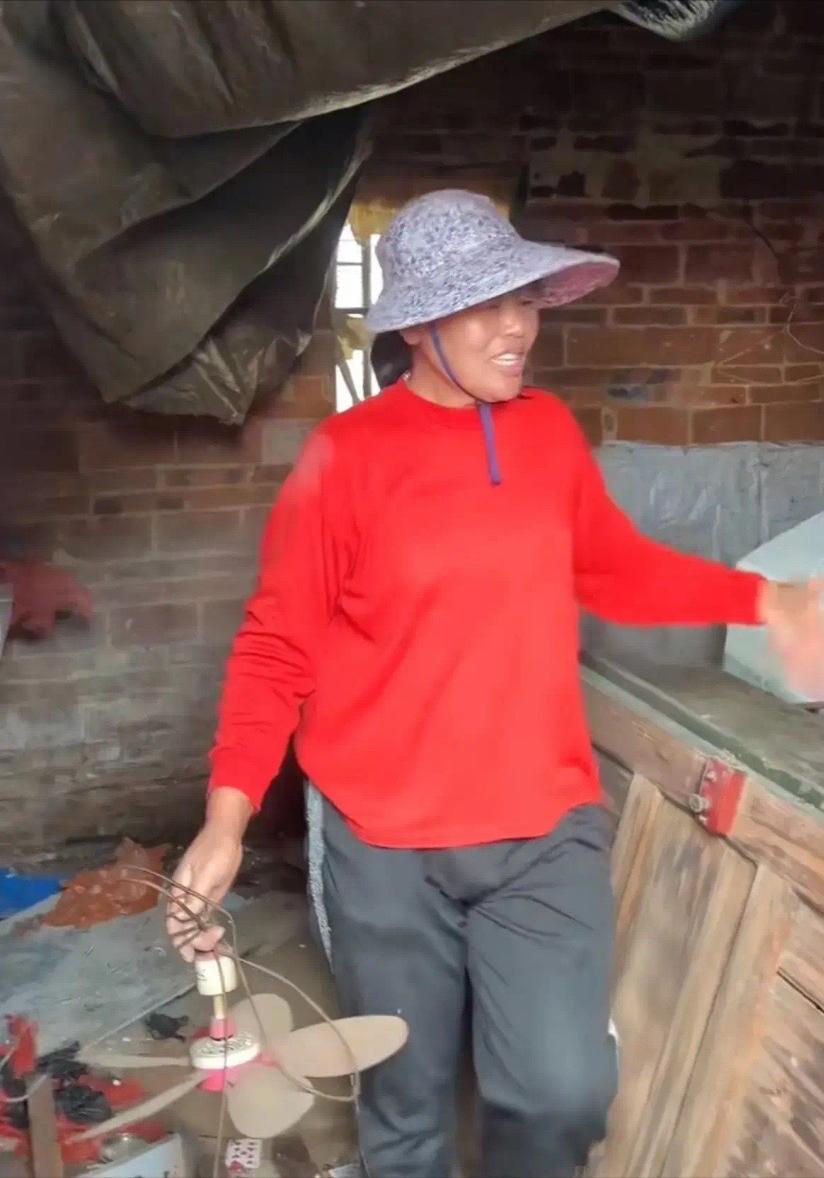 全媽手裏拿着一個很破舊的電風扇,想要收拾一下看看有沒有其他需要帶走的物品。