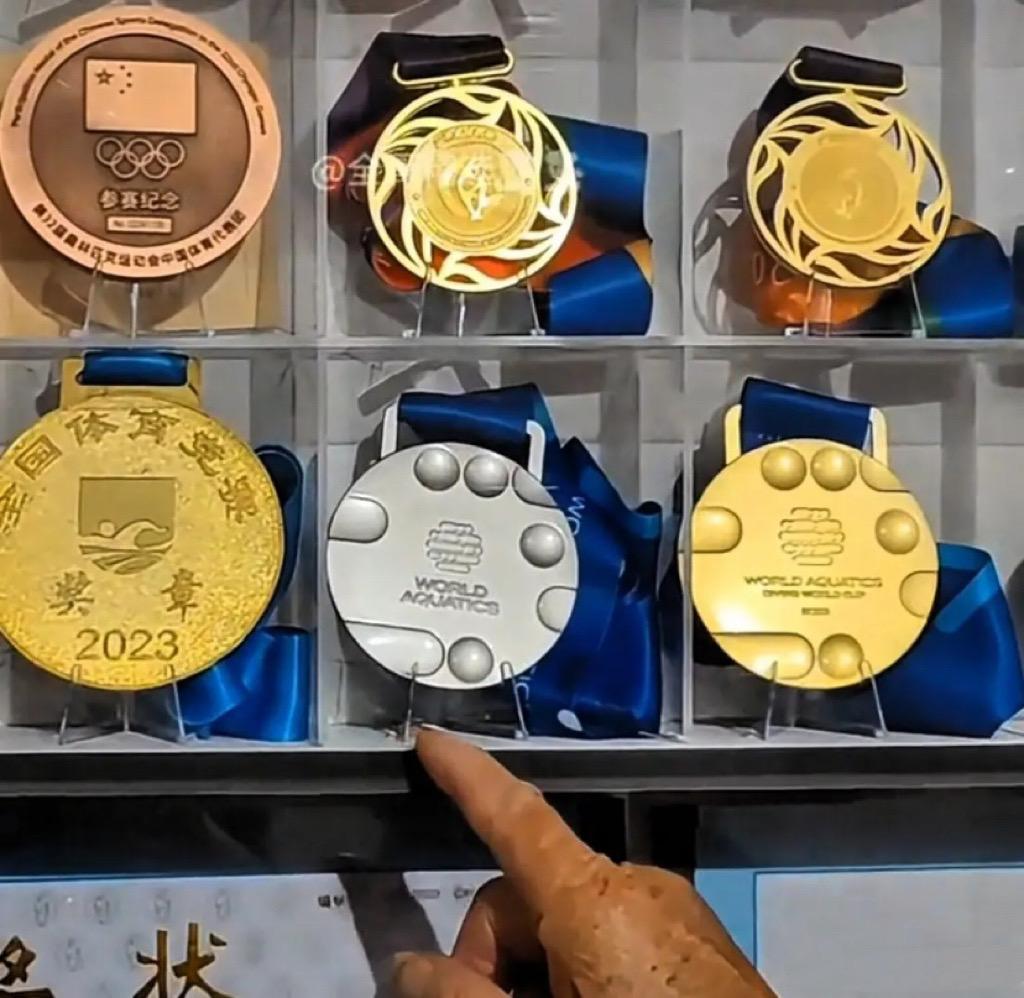 在老宅的房子裏,全媽媽還找到全紅嬋小時候的掛件。那時候大概全紅嬋十幾歲,都是參加比賽、登上領獎臺的瞬間。