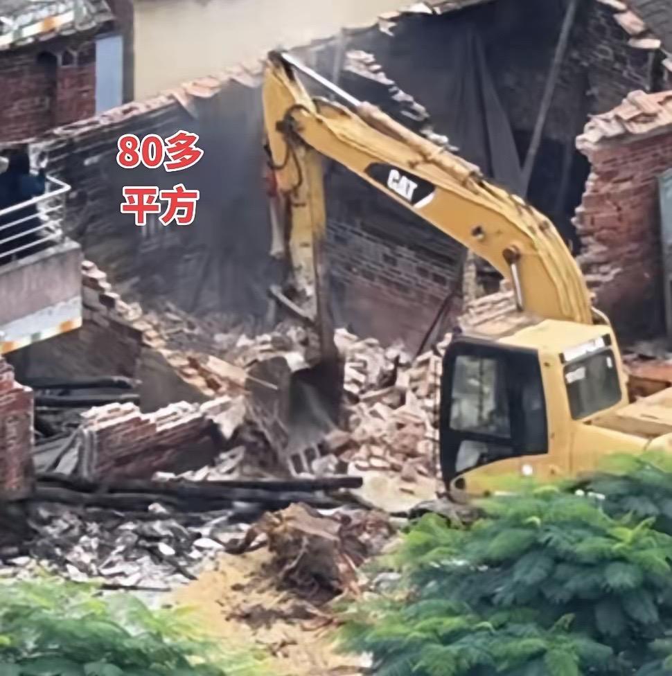 住宅的位置大概80平左右,挖掘機已經進場了,把原來的磚瓦房推倒,接着施工原料就可以進場了。