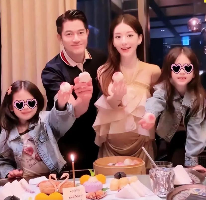 郭富城和方媛一家人的合影,這磨皮效果就不用多說了。