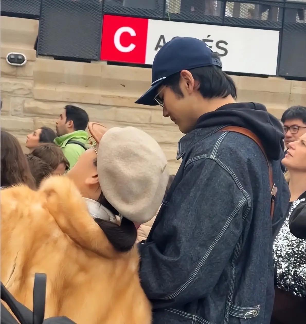 兩個人在國外度假,金莎穿着貂皮大衣、打折貝雷帽,一旁的男友高大帥氣、也太有安全感了。