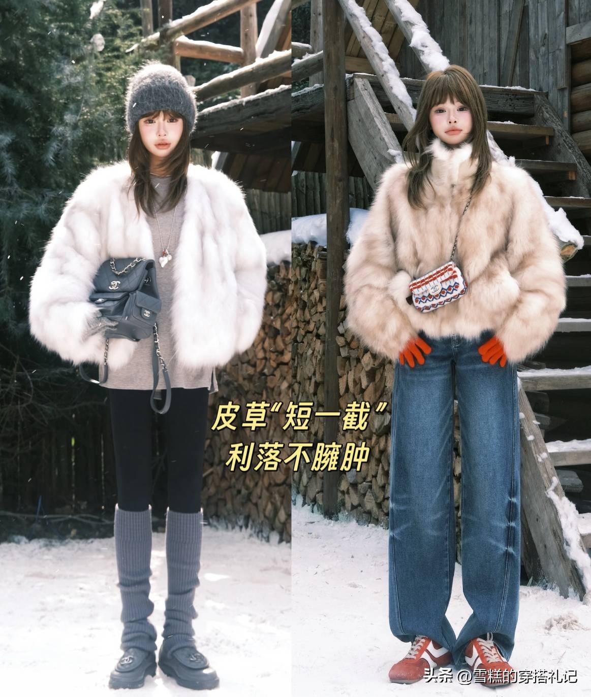 皮草自帶保暖性能,即便是短款,也能有效的鎖住熱量,毛茸茸的材質,看上去就很暖和,而且短皮草輕便又舒適,不會給身體帶來負擔,搭配無痕褲、彎刀褲、毛呢裙都很好看。