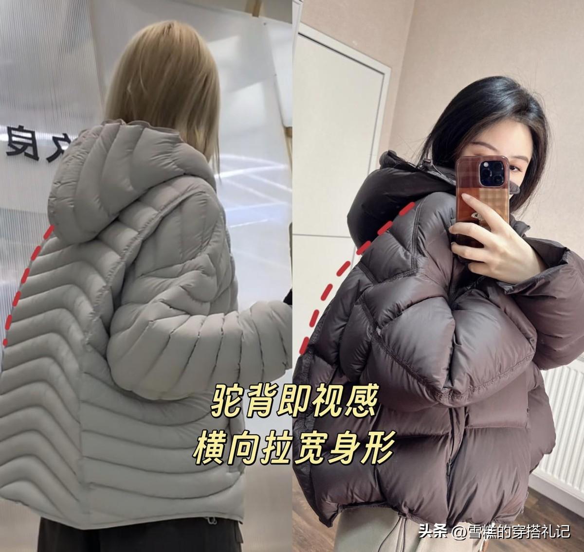 跟排骨羽絨服比起來,像這種龜殼羽絨服更離譜,版型上的缺陷,直接寫在明面上了,不僅缺乏修飾身形的作用,還會方法身材瑕疵,堪稱“缺點放大器”。