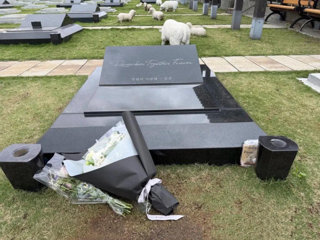 粉絲描述,具俊曄帶着一堆東西,看着心情不是很好,沒有說話的慾望。整個人很憔悴,他俯下身子擦拭大S的墓碑。