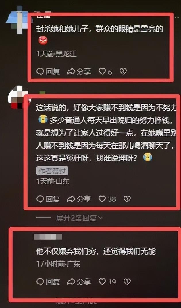 評論區網友在喊“封殺她和她兒子”。
