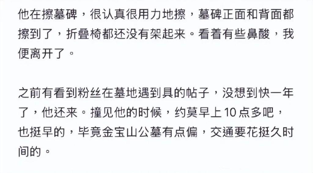 如果在大S墓地前停留的時間久了,具俊曄還會帶上摺疊椅,在那裏一坐就是一下午。