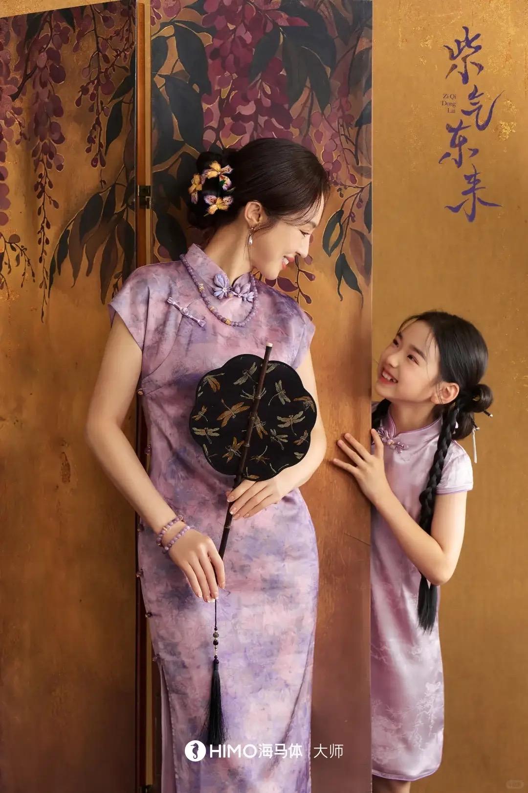 董璇和女兒的第二套服裝選擇了優雅的紫色旗袍,在董璇和張維伊結婚以來,時常有董璇二胎、小腹隆起的消息發出。