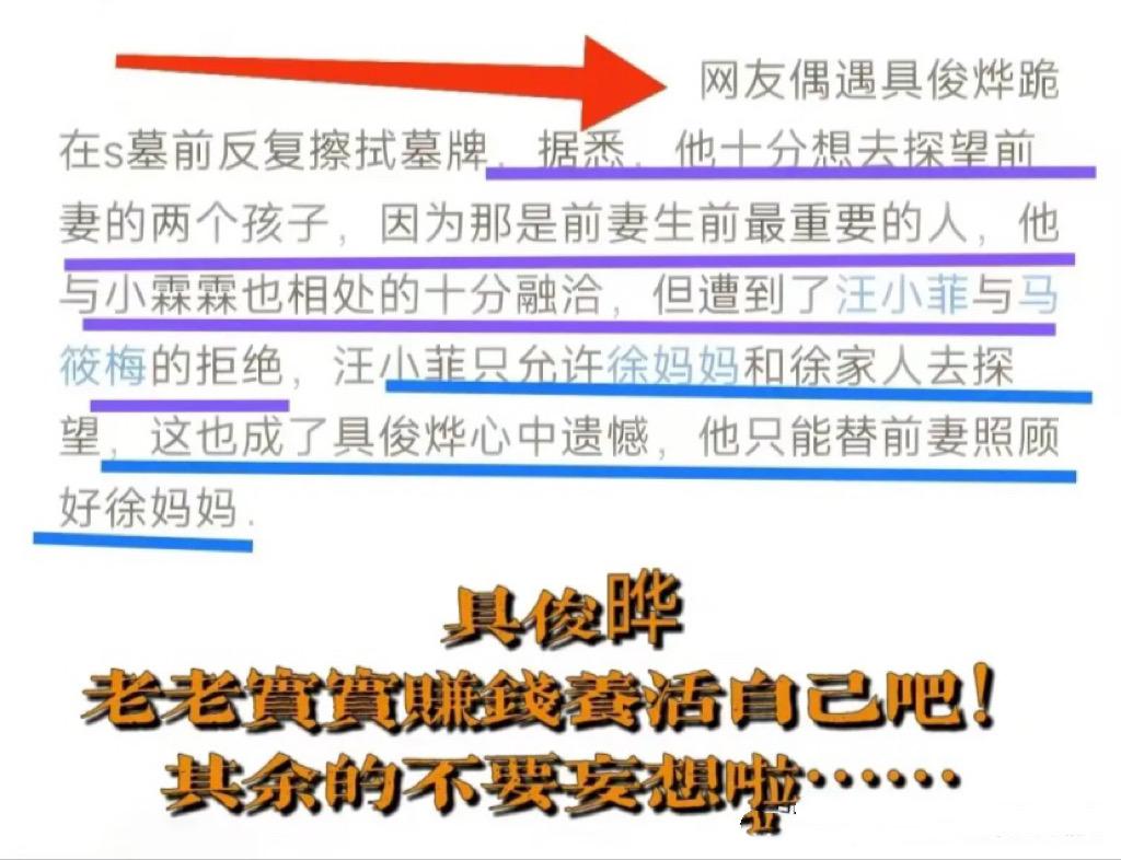 派一個具俊曄出來發言,又說汪小菲和馬筱梅不讓具俊曄看孩子。難道說不允許具俊曄看孩子,就是徐家人不看孩子的理由嗎?