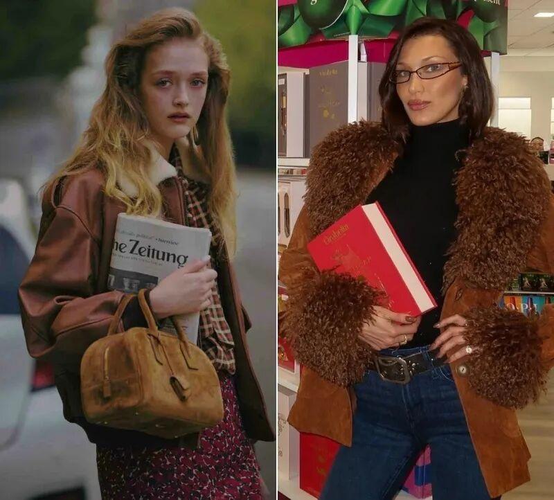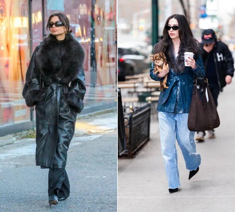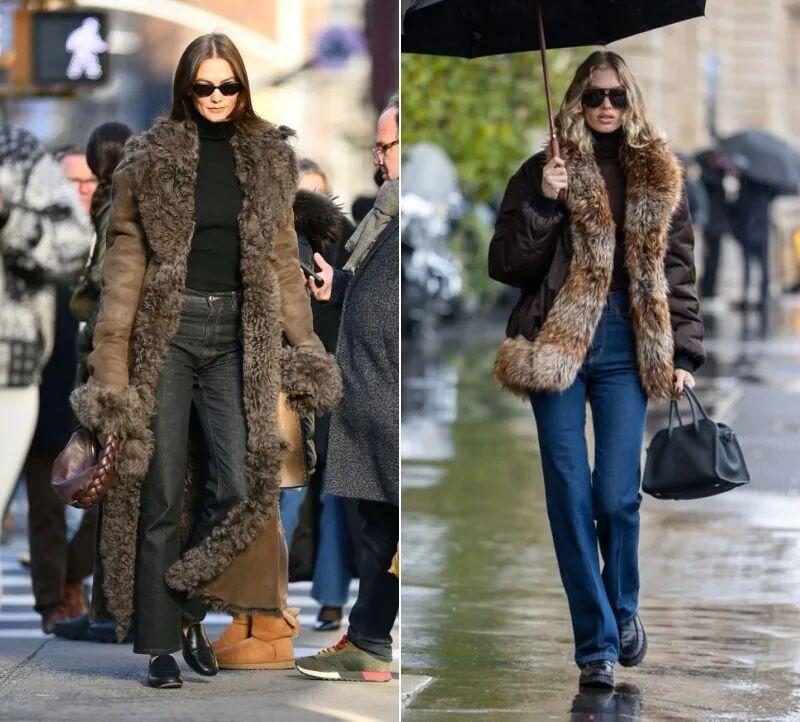 常規皮質(左)和麂皮材質(右)都很火,麂皮的更有遊牧氛圍;毛毛也非常影響風格,短毛日常利落(左),長卷毛適合走波西米亞風(右)。▼
