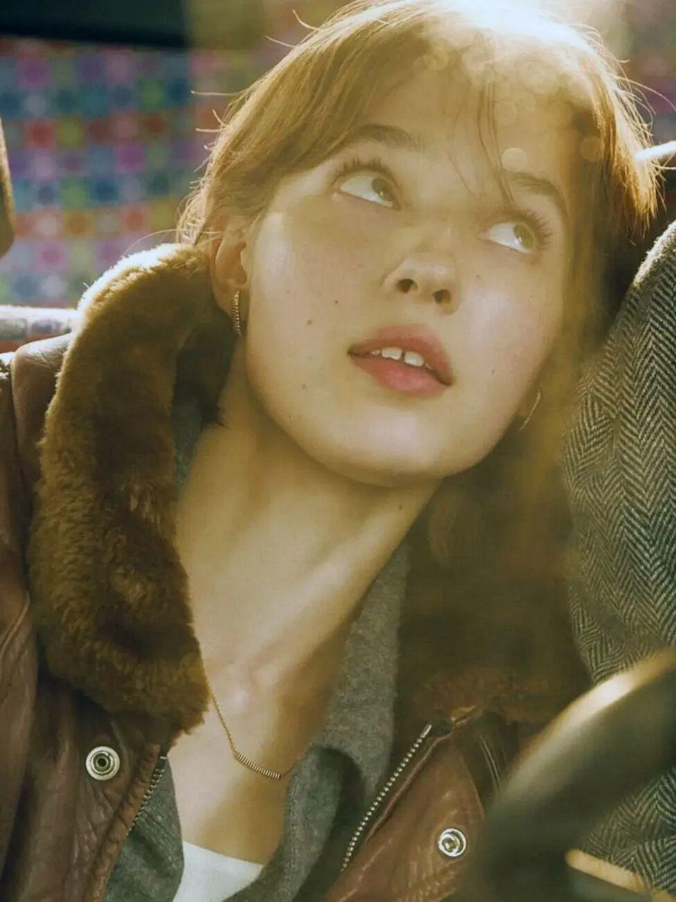 內搭也要“做減法”,選輕薄貼身的針織衫或修身打底,拍照時可以有意識露出腰線。這樣一來,外面再寬再蓬,整個人也不會被“吞掉”。