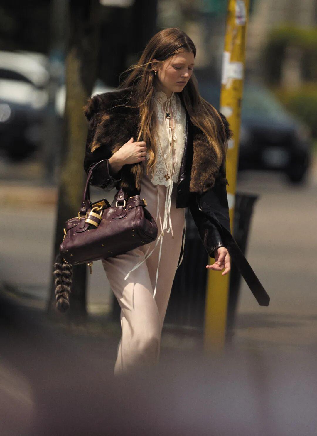 說到毛領回潮,我腦海裏居然跳出了《紅樓夢》裏的黛玉——雪地裏那件紅斗篷,領口一圈蓬鬆的白毛邊,襯得人既清麗又矜貴。▼