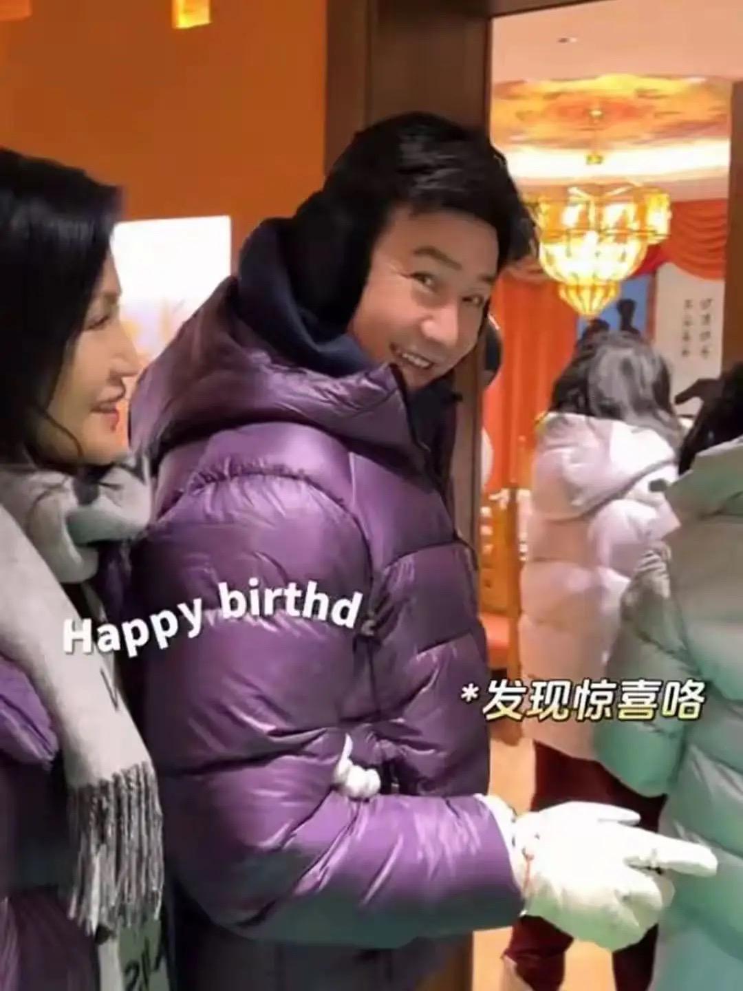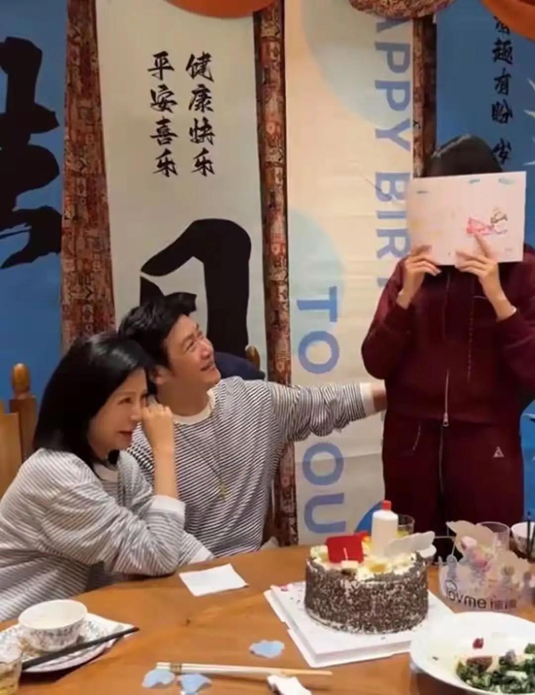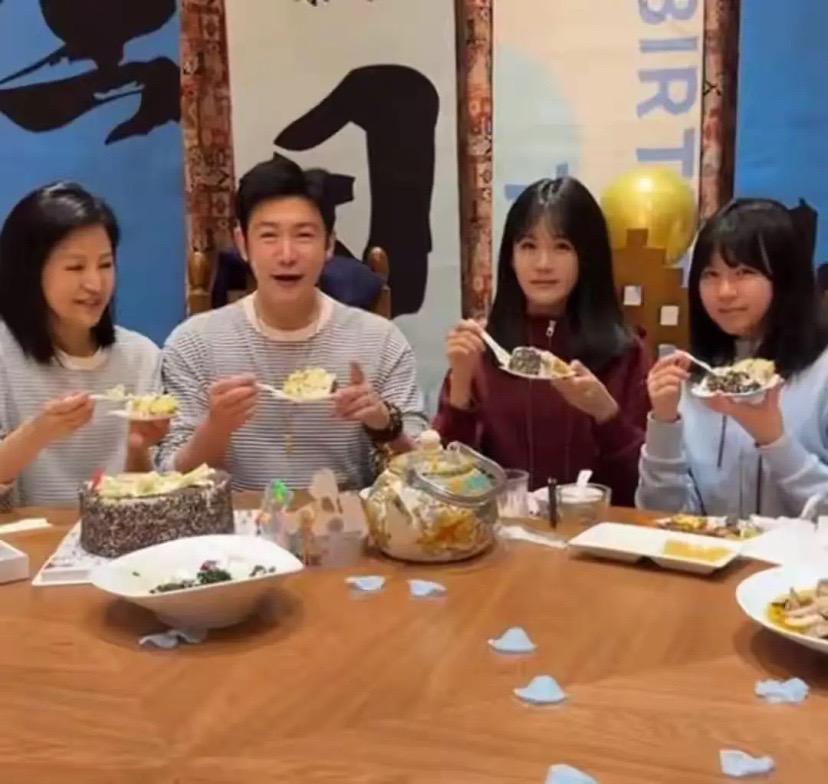 一家人一起切蛋糕,對着鏡頭拍照。用影片記錄時光,不知不覺又是一年,陸毅50歲了、還是那麼帥氣。