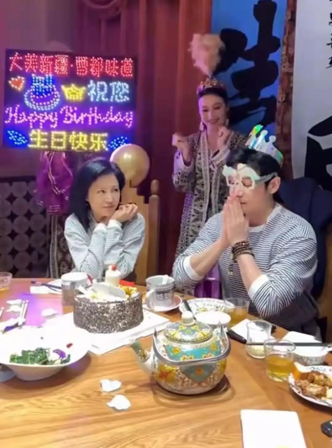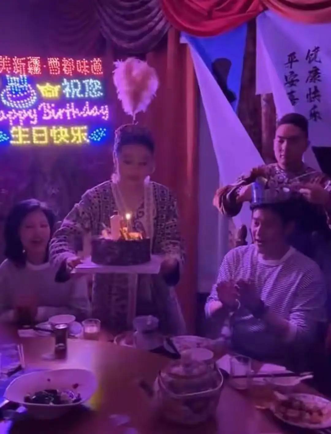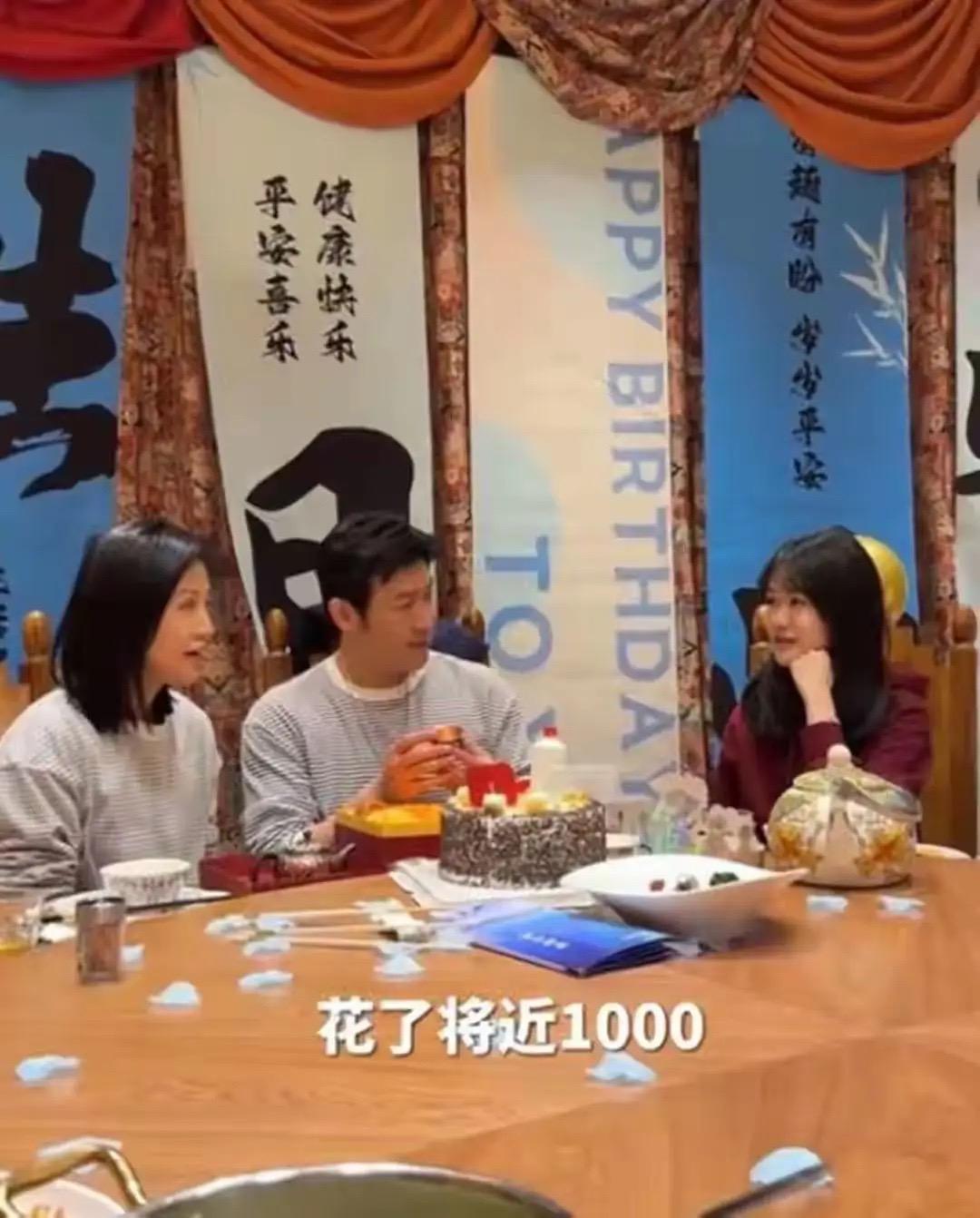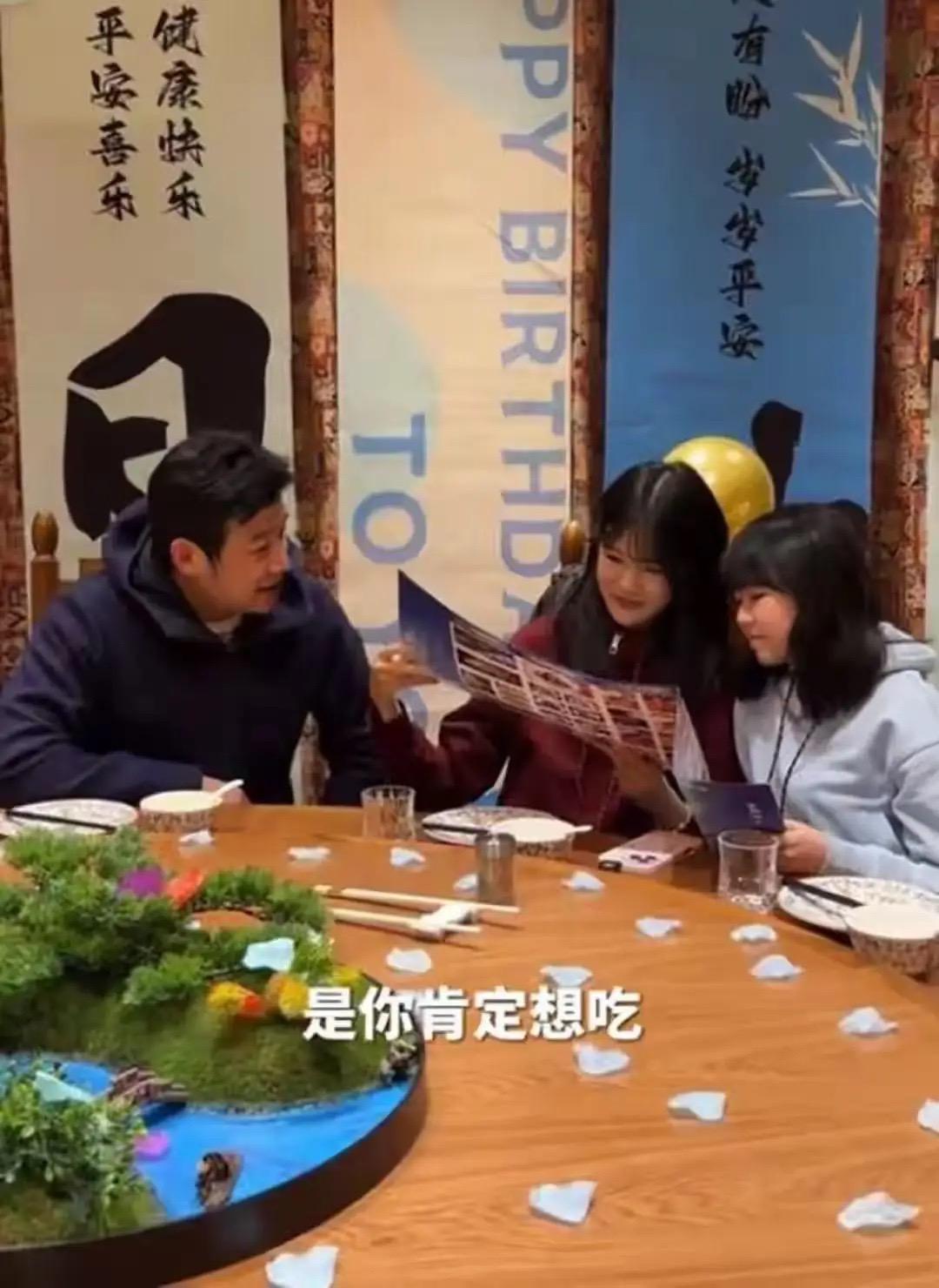陸毅在新疆慶50歲生日,倆女兒花1000塊買禮物,蛋糕上放着茅臺酒