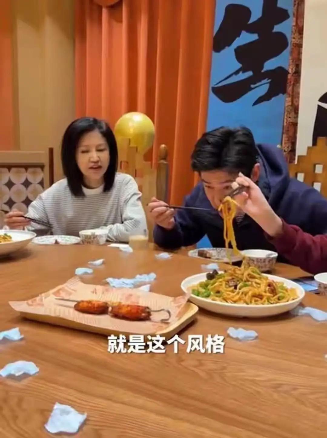 一家四口吃飯,貝兒和小葉子點的餐品不錯。看到餐桌上只有一碗炒麪、然後一串雞翅膀,陸毅低頭喫着什麼嚼不動的東西,感覺很喫力。