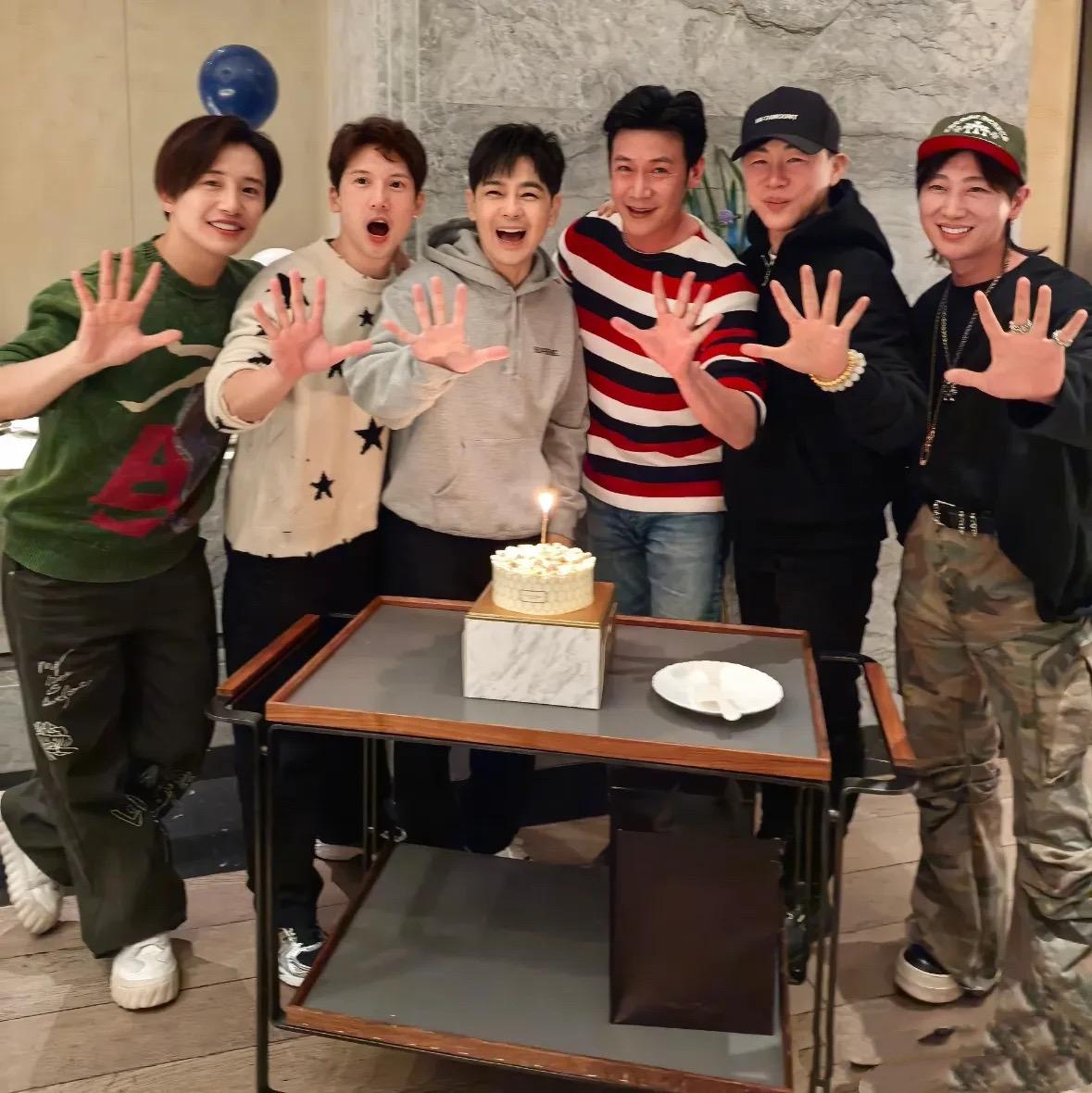 在圈子裏,陸毅有很多好朋友。去年生日除了Ace組合到場,還有林志穎也來了,他們都比出5的手勢,特別快樂。