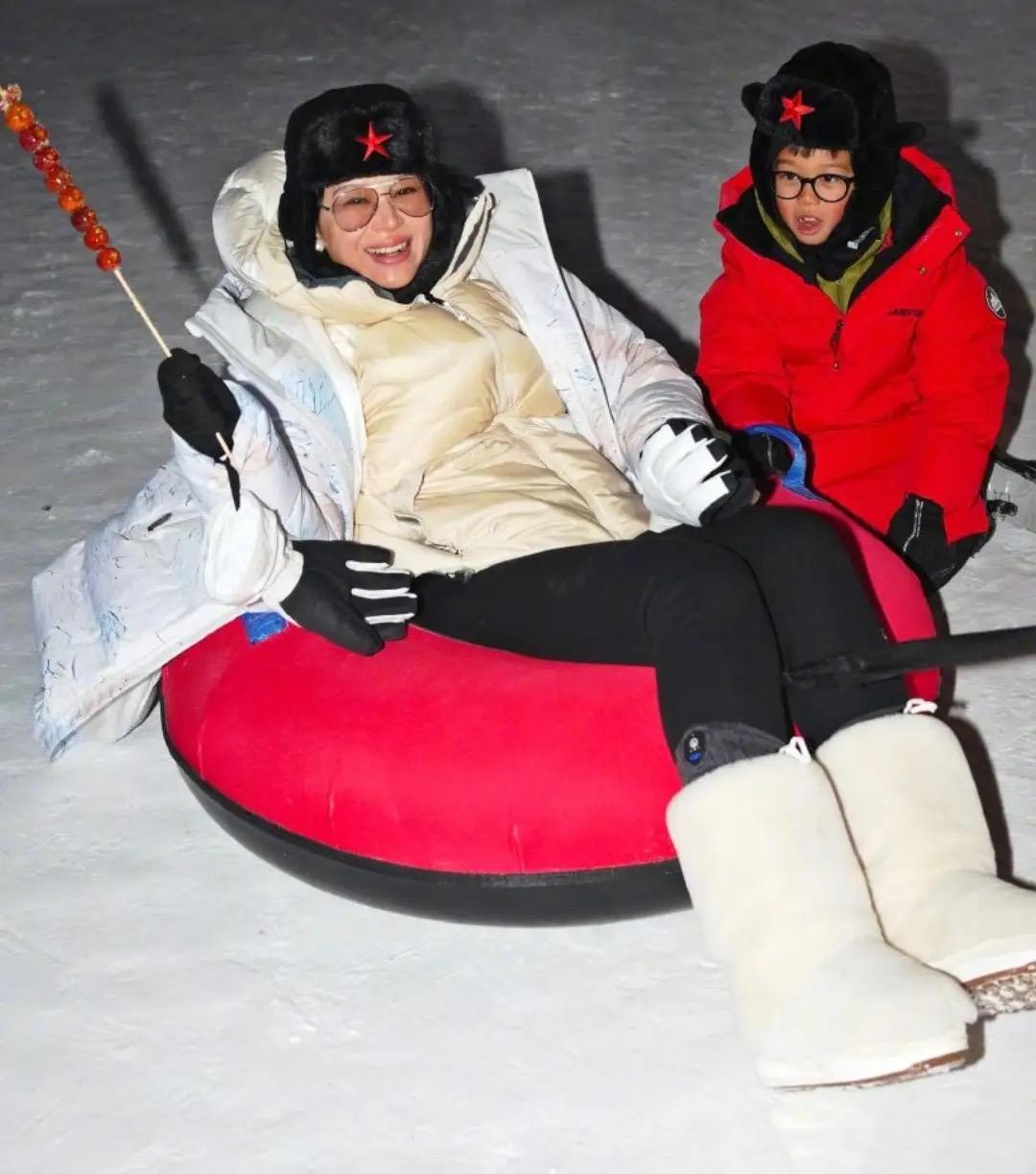 胡杏兒一家遊哈爾濱,套5層衣服凍出“高原紅”,三兒子長勢喜人