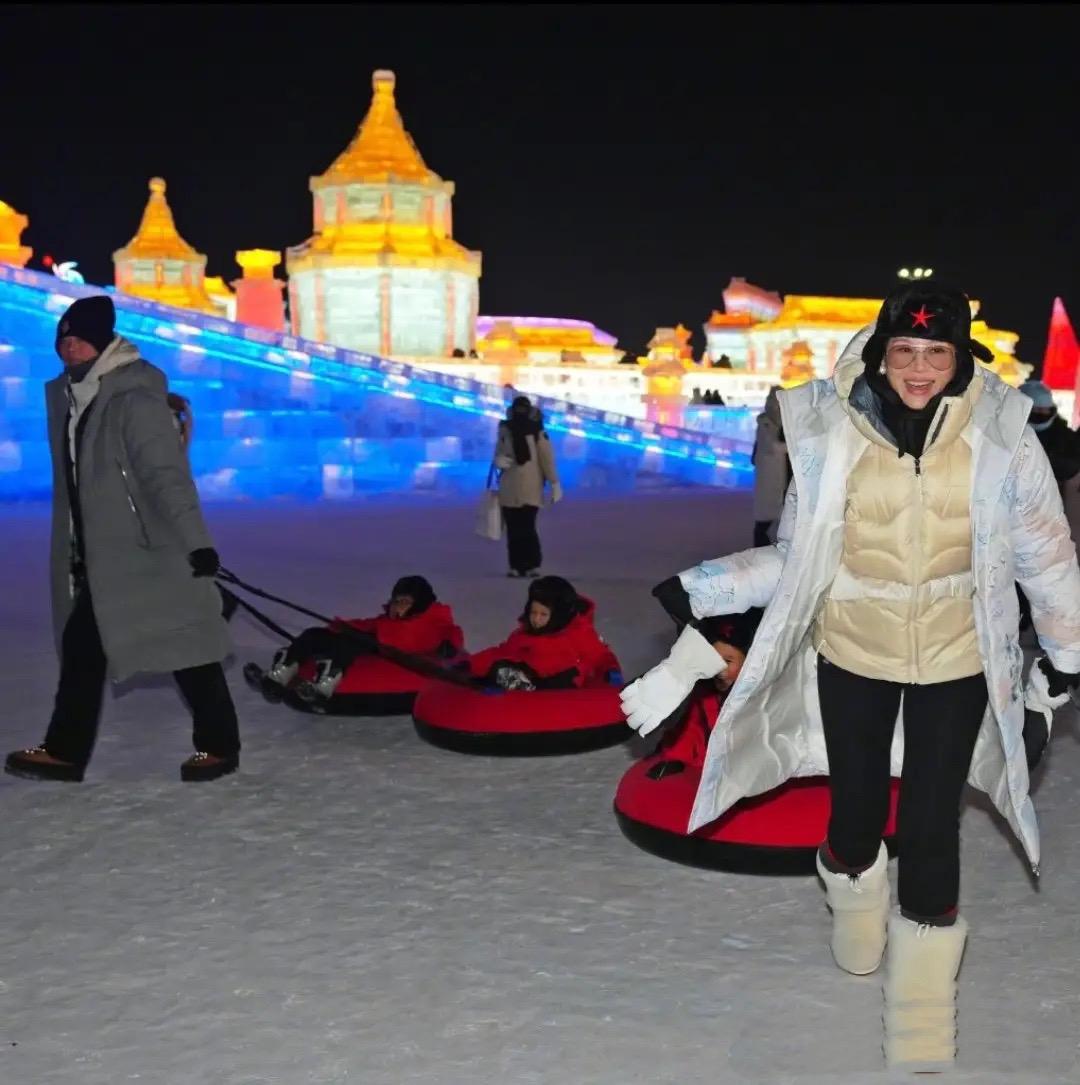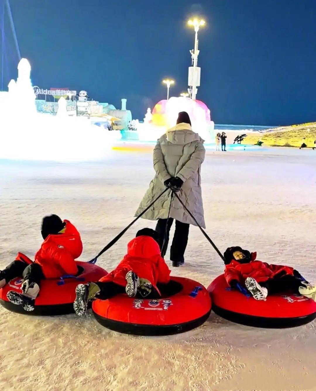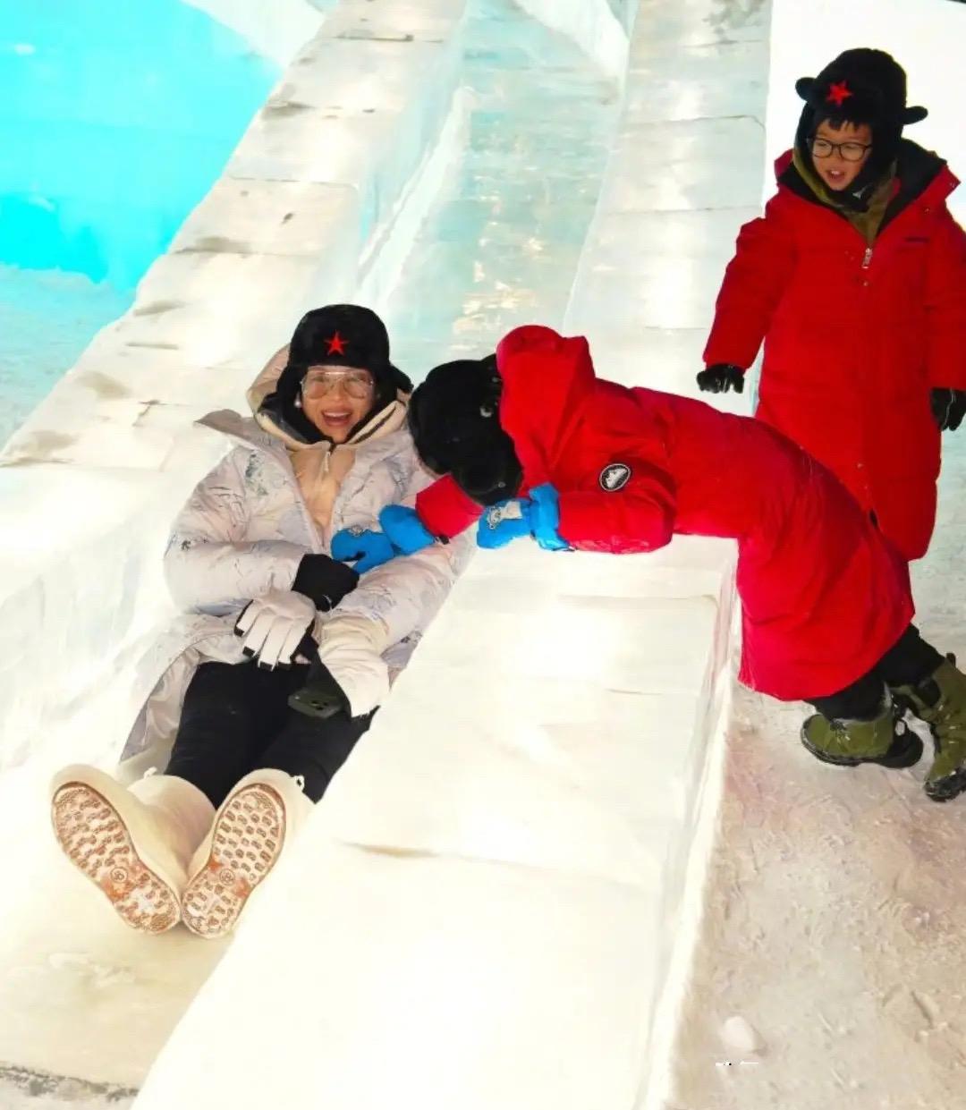 這次的哈爾濱之旅,一家人都很快樂。雖然臉頰凍出了“高原紅”,但每個人都樂在其中。不僅孩子們開心、夫妻倆也玩得很嗨!