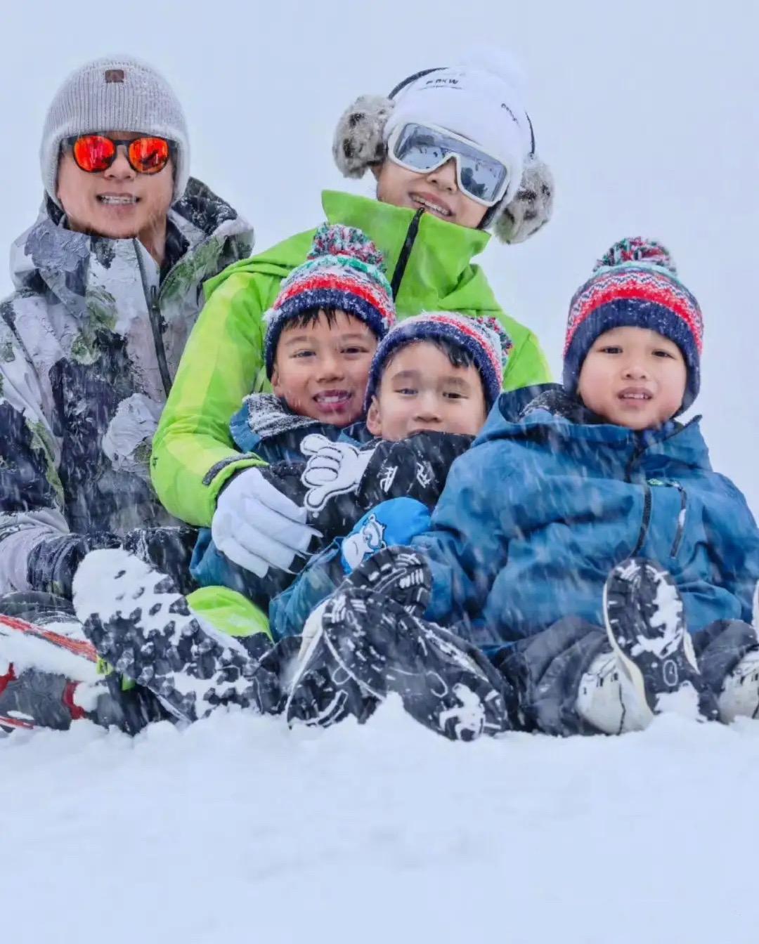 他們在大雪人和摩天輪下拍照,幸福的模樣具象化了。胡杏兒有三個兒子,分別8歲、6歲、4歲,孩子們長勢真喜人啊。