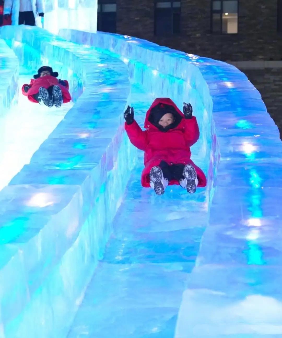 3個兒子也是第一次見到這麼多的冰塊和雪,直接都玩嗨了。在冰塊滑道上溜下來,這也太痛快了,就是不知道會不會屁股疼。