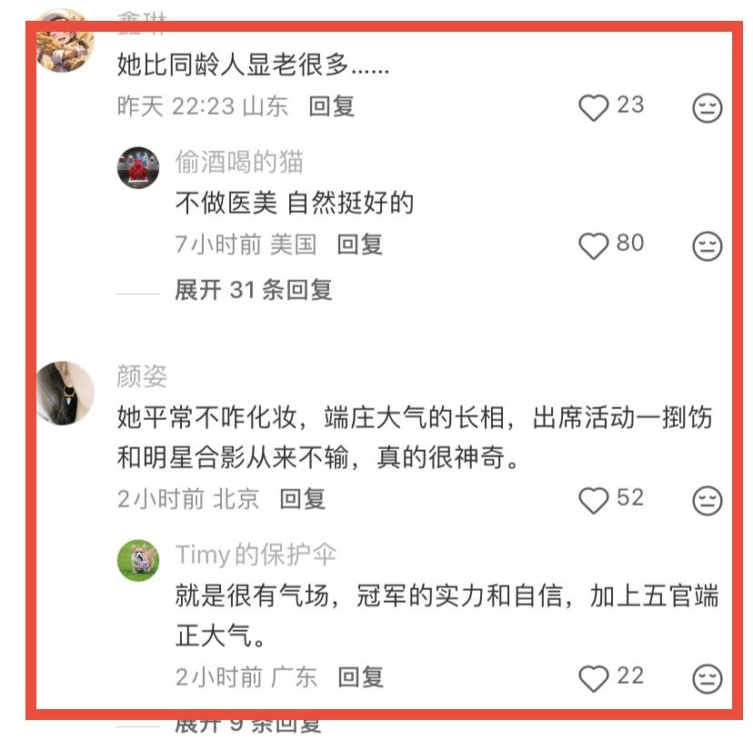 郭晶晶平時不化妝,素顏的狀態多少有點顯老。但她屬於那種很端莊大氣的長相,每次出席活動一打扮,從來都不輸女明星。大概這就是冠軍自帶的氣場!