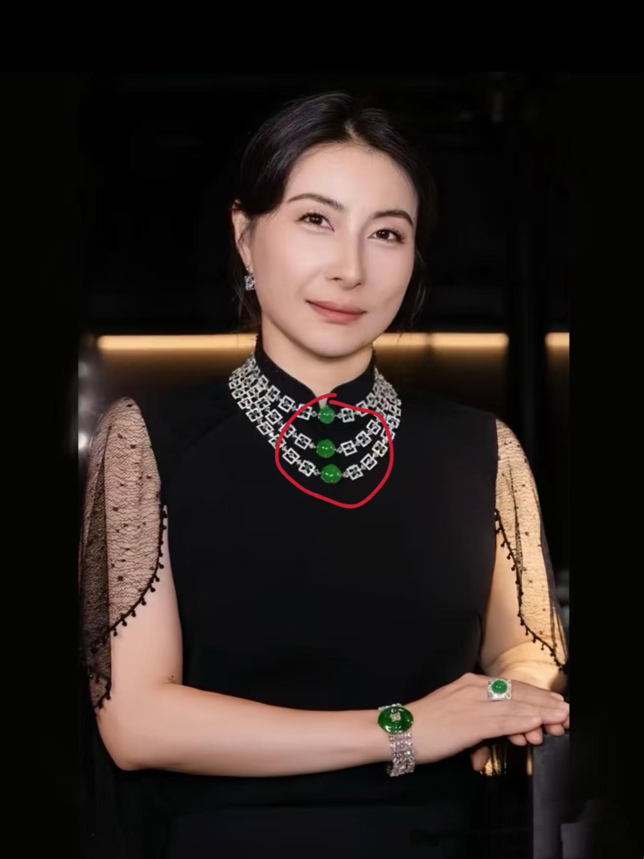 出席活動的時候,郭晶晶穿黑色旗袍裙,高定款式溫婉端莊。一整套的祖母綠首飾,也滿了貴氣。