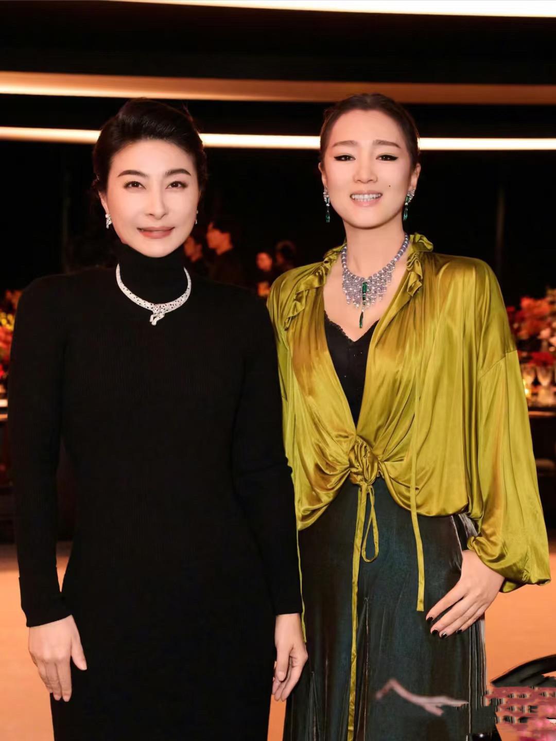 和“最美面孔”朱珠合影,郭晶晶的顏值、氣場也不遜色分毫,倆人拿同款包包,分明是郭晶晶更大氣。