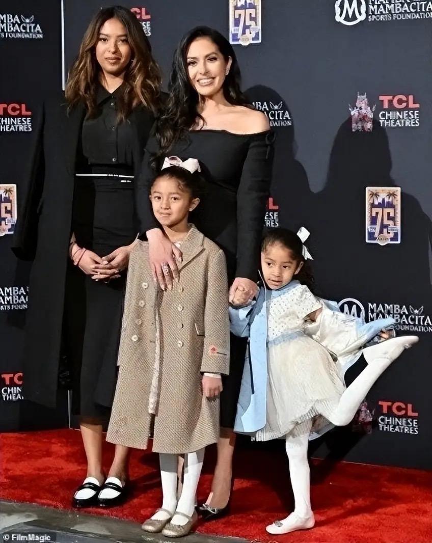 43歲瓦妮莎曬全家福,減重60斤美豔性感沒再婚,3個女兒都像科比