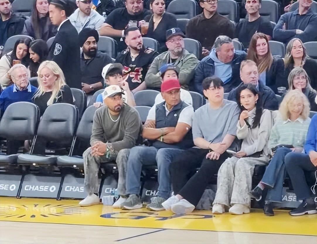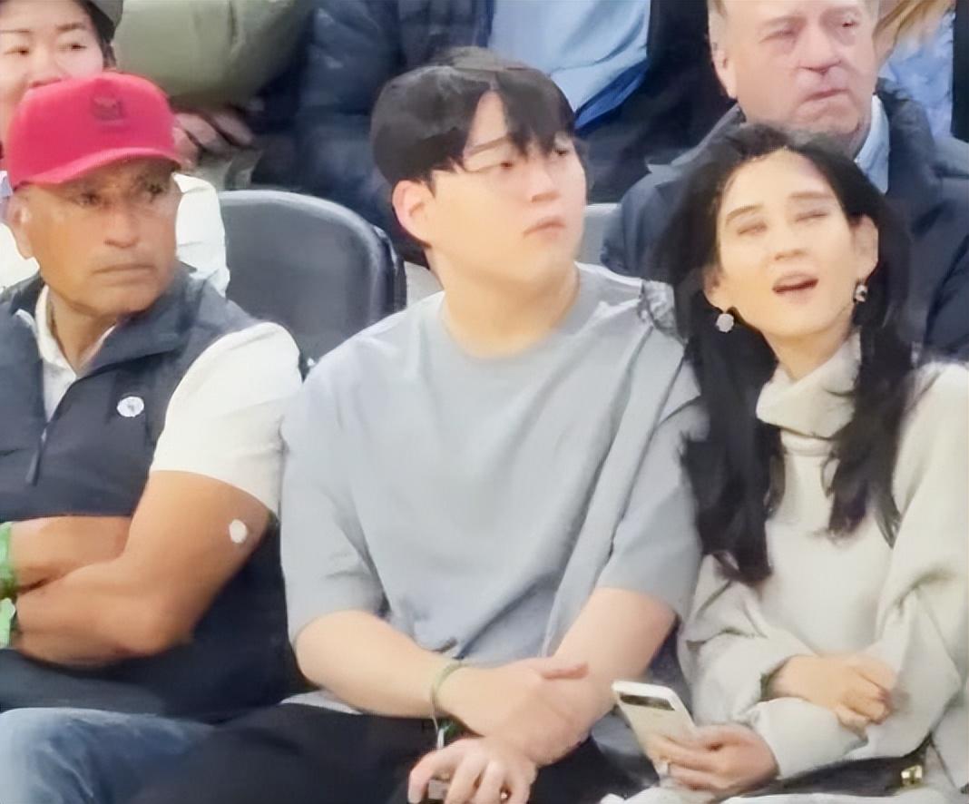近日,有網友在美國偶遇李富真陪同兒子任東賢觀看勇士大戰爵士的NBA比賽,母子二人端坐第一排,神情專注。