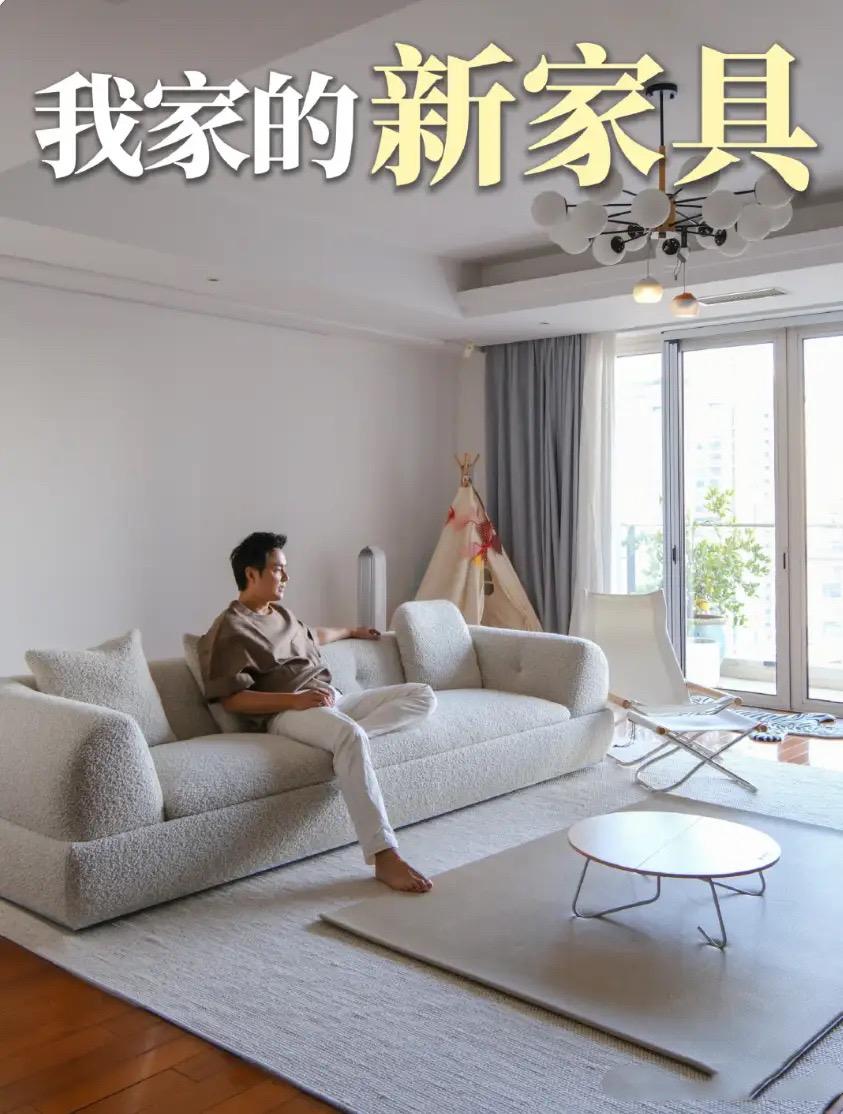 大概定製款就是貴吧,這沙發的設計很簡約、和他家的大白牆還挺配的。明明是300平的豪宅,卻有一種廉價感。