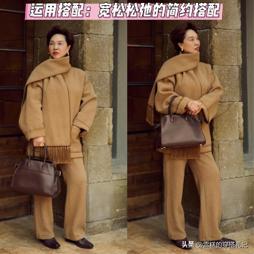 如果你的年齡階段也已經上了60多歲的話,那麼我們在選擇單品的時候,就一定要多多注重,優先於選擇運用經典的穩定性單品,是非常放心可以將其搭配的,例如像長款的大衣,又或者是。毛呢系列的一些簡約型的外搭單品,還有就是針織系列的外搭,對於這個年齡階段的女性來說,幾乎都是很高頻率的經典型搭配。
