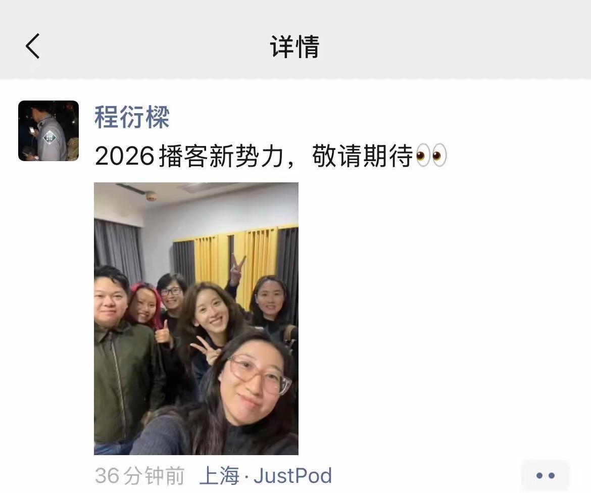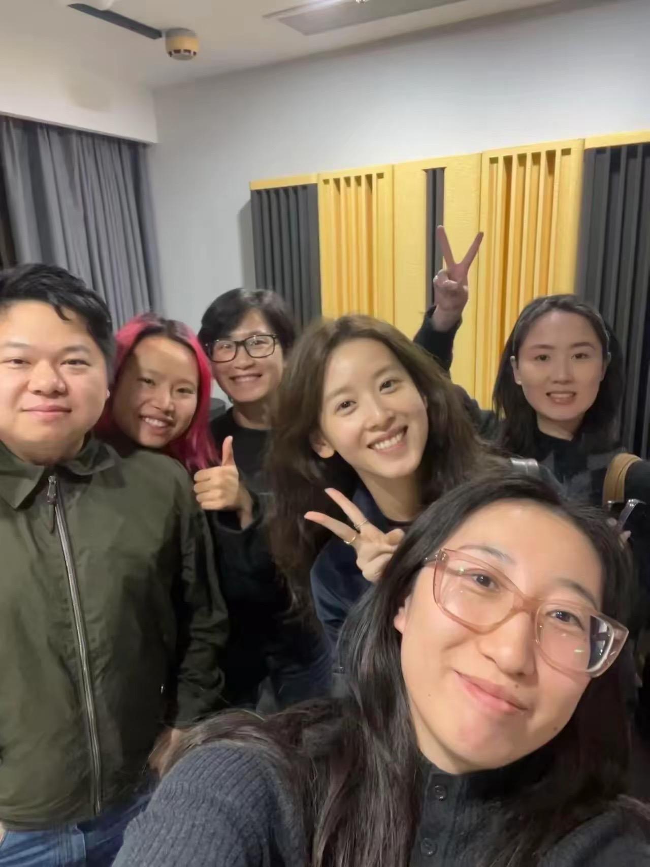 原來章澤天正在策劃新的播客節目,她和《忽左忽右》的主持人程衍樑一起開會。大家還拍了合影,工作的氛圍很快樂,都是年輕人、喜歡輕鬆的工作氛圍。