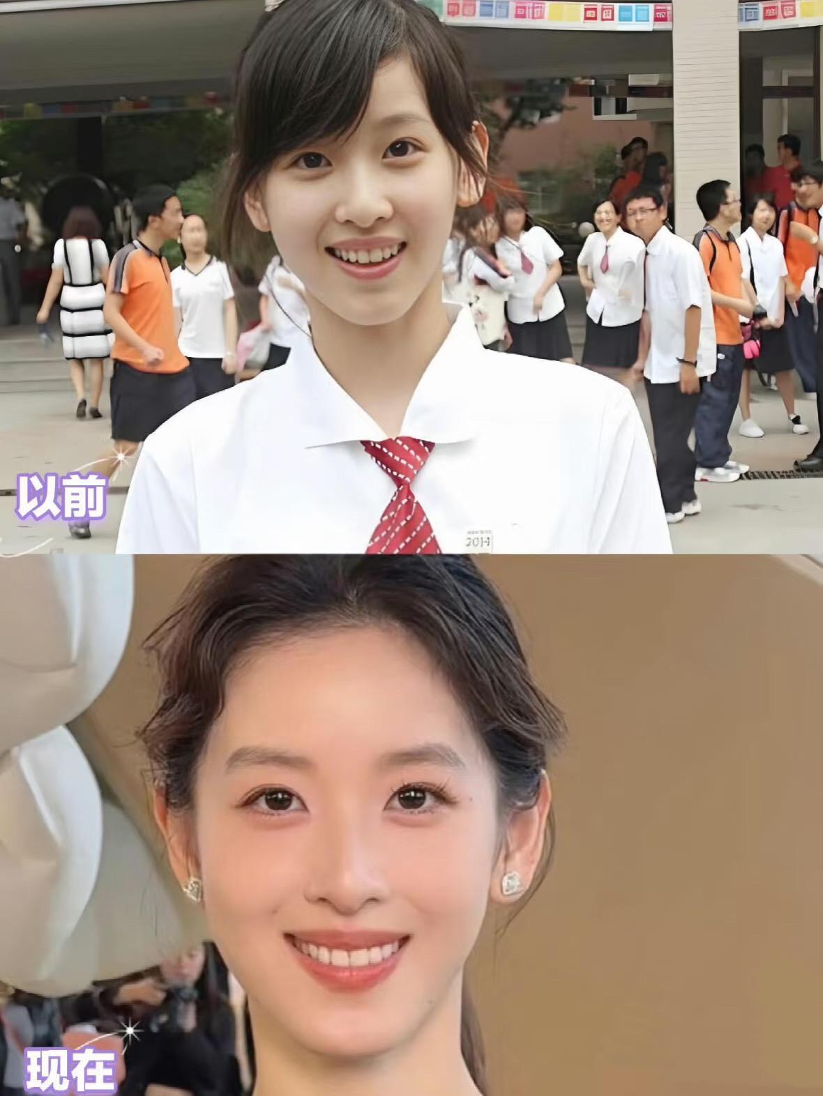 以前的章澤天是青春甜美的,讀書時候穿白襯衫、就是白月光的模樣。